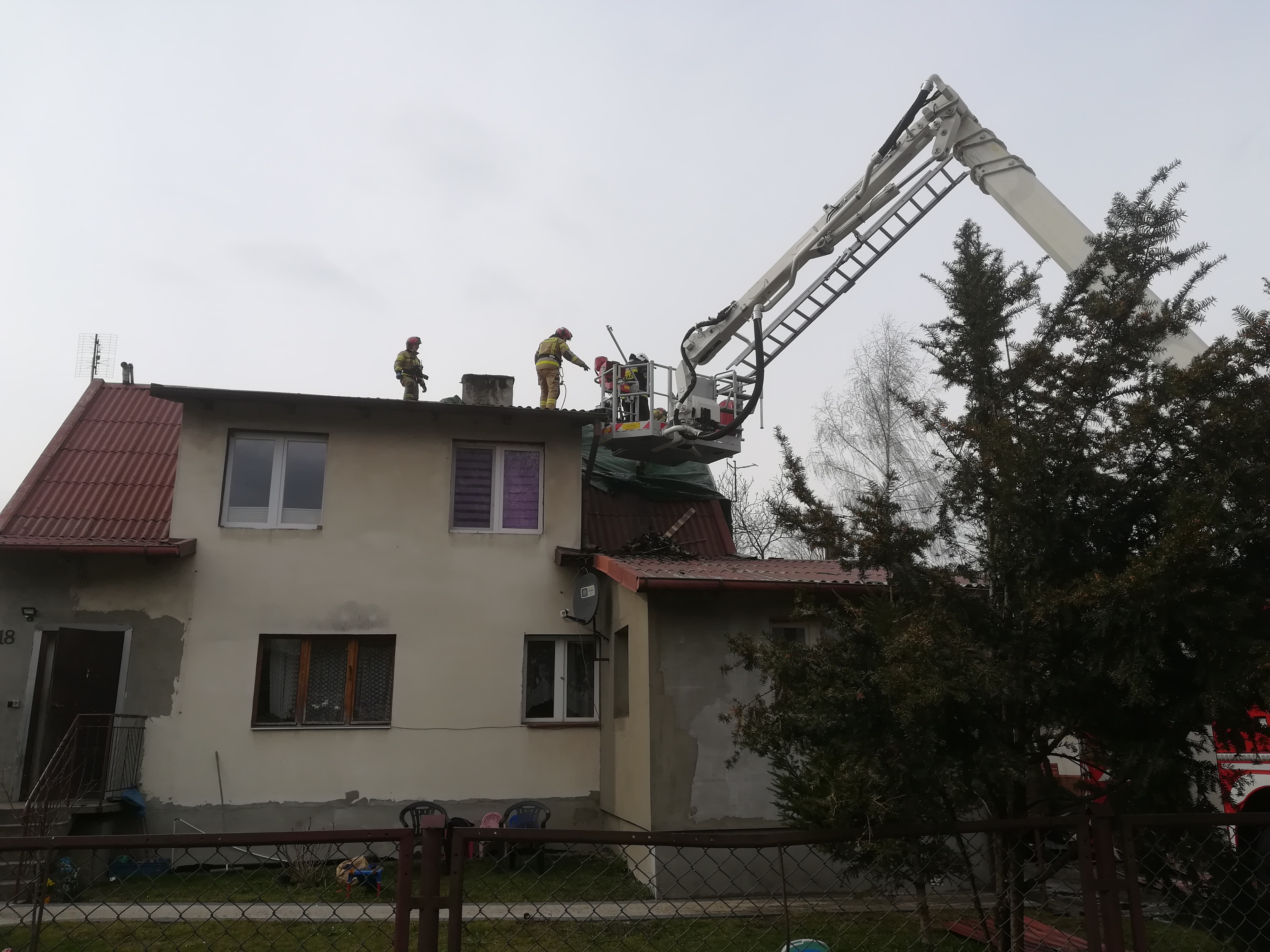 Dnia 9 kwietnia b.r. w miejscowości Nowa Kościelnica doszło do pożaru przewodu kominowego, po czym zapaleniu uległo poddasze budynku mieszkalnego. Działania straży pożarnej polegały na zabezpieczeniu miejsca zdarzenia, podanie jednego prądu wody z terenu ziemi na dach, odłączenie prądu energetycznego. Wprowadzono do wewnątrz budynku rotę wyposażoną w aparaty ochrony układu oddechowego i kamerę termowizyjną oraz linią gaśniczą. Dotarcie do źródła pożaru przez właz w suficie znajdujący się na I kondygnacji, monitorując jednocześnie temperaturę panującą na poddaszu. Natarciem wewnętrznym ustalono lokalizację pożaru na nieużytkowanym poddaszu. Działania te pozwoliły na ograniczenie rozprzestrzeniania się pożaru oraz procesu palenia. Z uwagi na wysoką temperaturę i warunki pracy ratowników, które wymuszały działania w aparatach SOUO, zabezpieczono ich wsparciem ratowników z OSP oraz wsparciem logistycznym (woda i napoje, sprzęt SOUO). Sprawdzono wszystkie pomieszczenia mieszkalne. Po oddymieniu i przewietrzeniu, przystąpiono do usunięcia spalonej części konstrukcji dachowej (krokwie, wiatrołap, płatew, poszycie deskowe) oraz pokrycie dachu. Z rozstawionego podnośnika hydraulicznego, sprawdzono wnętrze komina, uszkodzony dach zabezpieczono plandeką i łatami drewnianymi. W działaniach brały udział 4 zastępy JRG w sile 8 ratowników oraz 1 zastęp OSP Nowa Kościelnica w sile 6 ratowników.