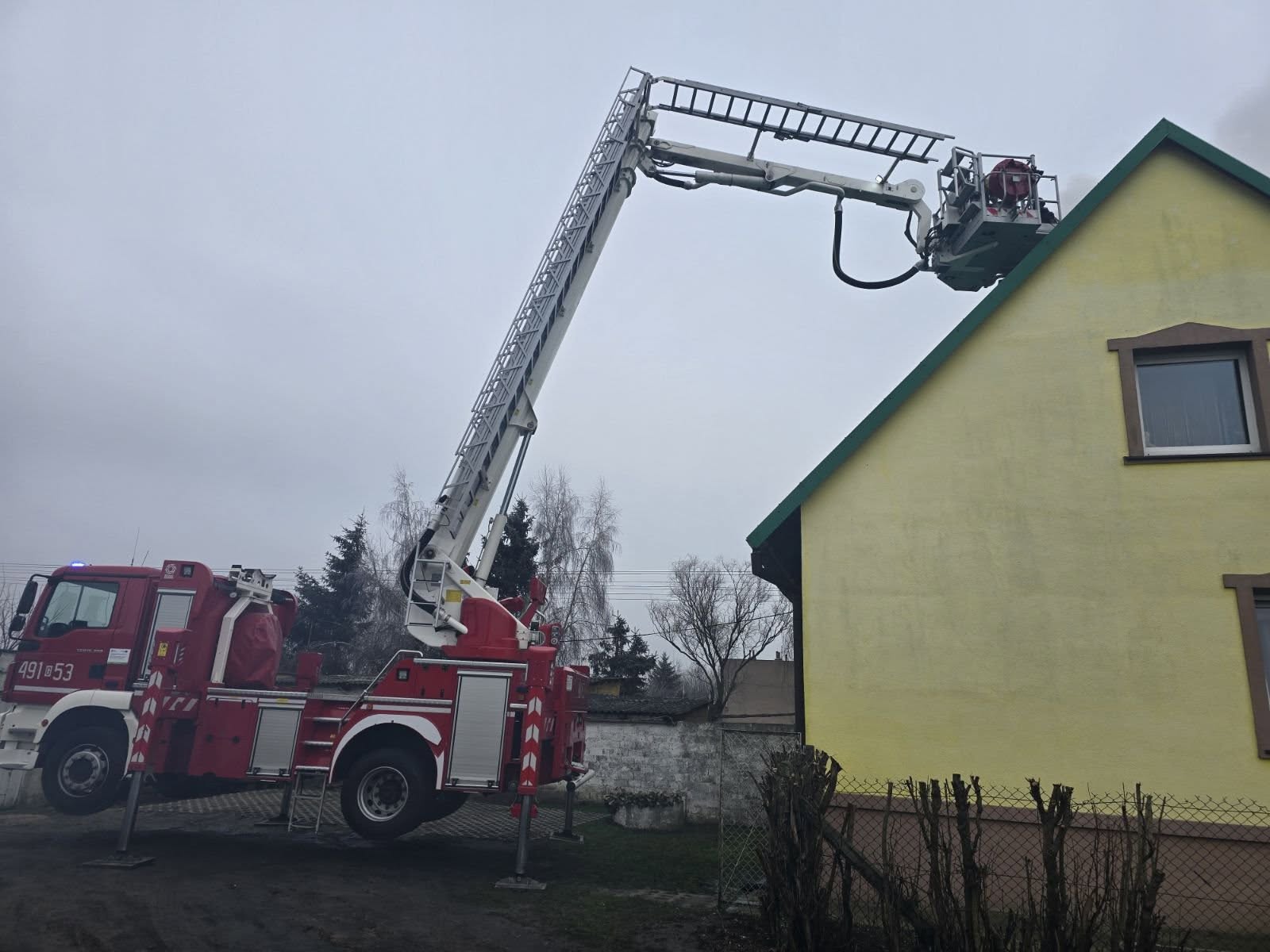 21 stycznia 2025 roku o godzinie 10:59 Dyżurny Stanowiska Kierowania Komendanta Powiatowego PSP w Nowym Dworze Gdańskim otrzymał zgłoszenie o pożarze sadzy w przewodzie kominowym w miejscowości Cyganek. Działania strażaków polegały na zabezpieczeniu miejsca zdarzenia, usunięciu zagrożenia przy pomocy podnośnika hydraulicznego oraz sprzętu kominiarskiego. Przy pomocy kamery termowizyjnej sprawdzono komin, detektorem wielogazowym sprawdzono pomieszczenia mieszkalne - zagrożenia brak, następnie budynek mieszkalny przewietrzono.