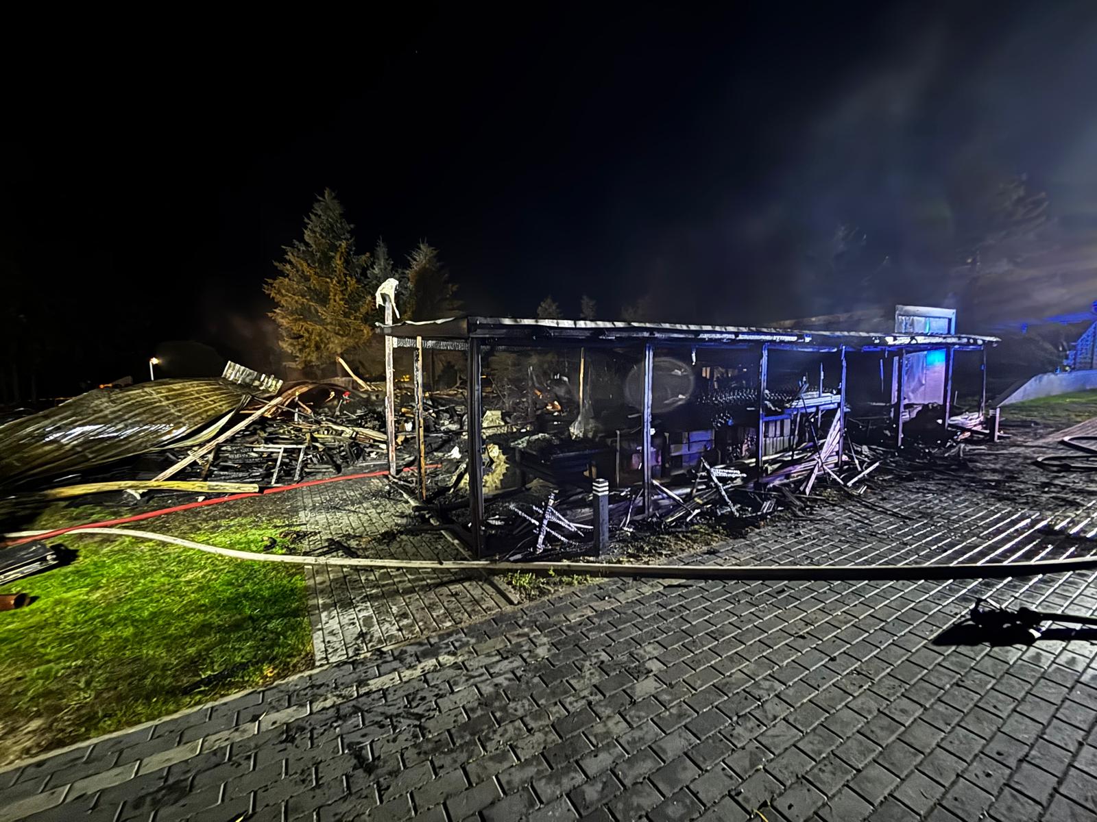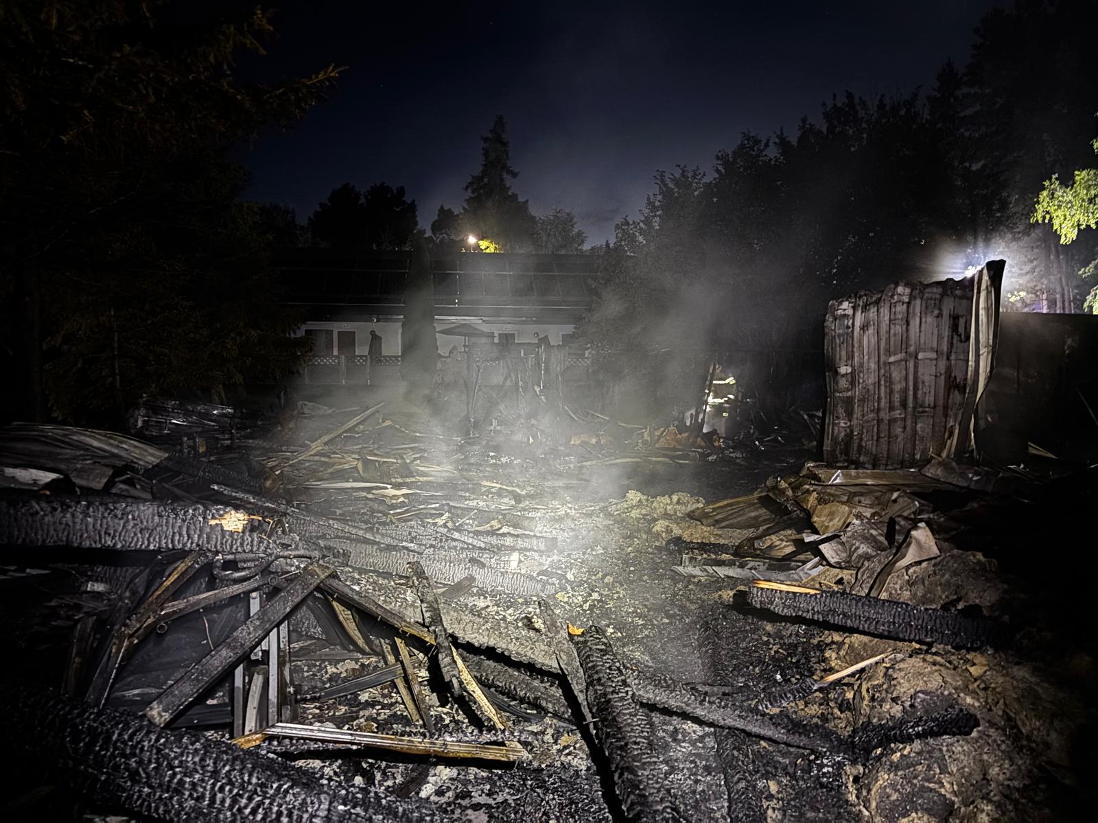 12 sierpnia 2025 roku o godzinie 00:56 Dyżurny Stanowiska Kierowania Komendanta Powiatowego PSP w Nowym Dworze Gdańskim otrzymał zgłoszenie o pożarze wiaty w Jantarze przy ulicy Rybackiej. Po dojeździe pierwszych zastępów straży pożarnej okazało się, że cała wiata o wymiarach 12m x 22m objęta jest pożarem. Podano łącznie 5 prądów wody w natarciu co pozwoliło ugasić pożar. Przed przyjazdem straży pożarnej z sąsiednich domków zlokalizowanych niedaleko wiaty ewakuowało się 14 osób, w tym siedmioro dzieci. W zdarzeniu brały udział: