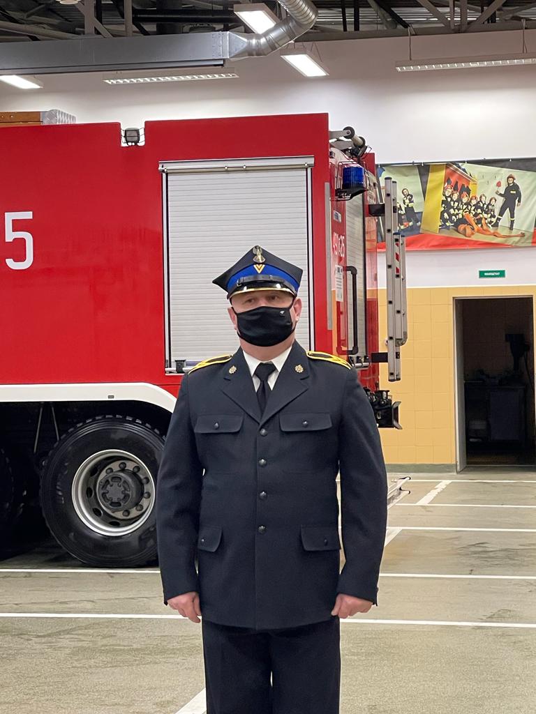 W dniu 31 stycznia 2022 roku Pan st. ogn. Dariusz Patron zakończył służbę w Państwowej Straży Pożarnej i przeszedł na zaopatrzenie emerytalne. Z tej okazji w Komendzie Powiatowej Państwowej Straży Pożarnej w Nowym Dworze Gdańskim odbyła się uroczysta zbiórka. Podczas uroczystości Komendant Powiatowy PSP w Nowym Dworze Gdańskim bryg. Janusz Leszczewski przybliżył przebieg kariery funkcjonariusza oraz wręczył decyzję w związku z przejściem na zaopatrzenie emerytalne.