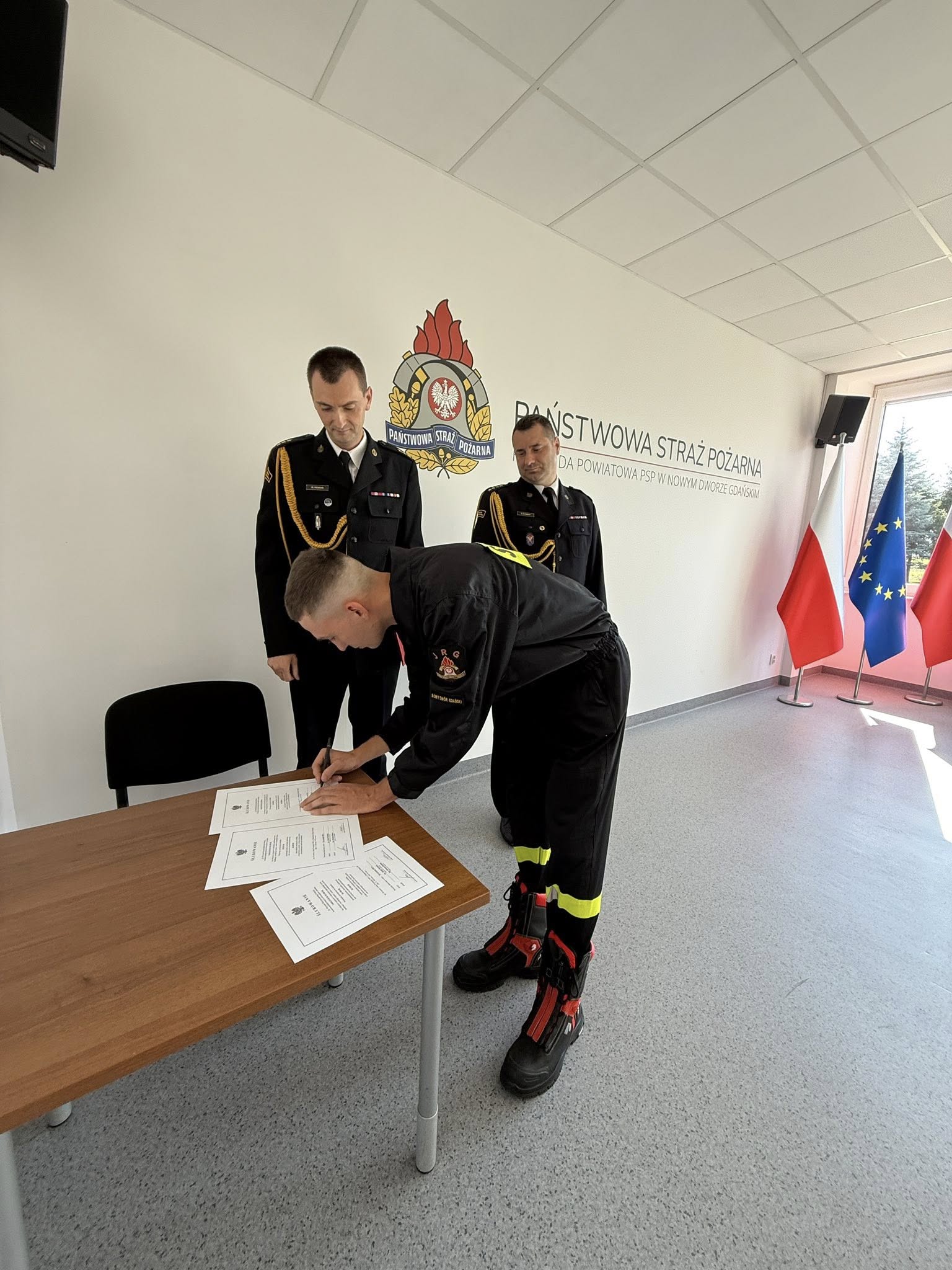 Ślubowanie nowo przyjętego strażaka Państwowej Straży Pożarnej
