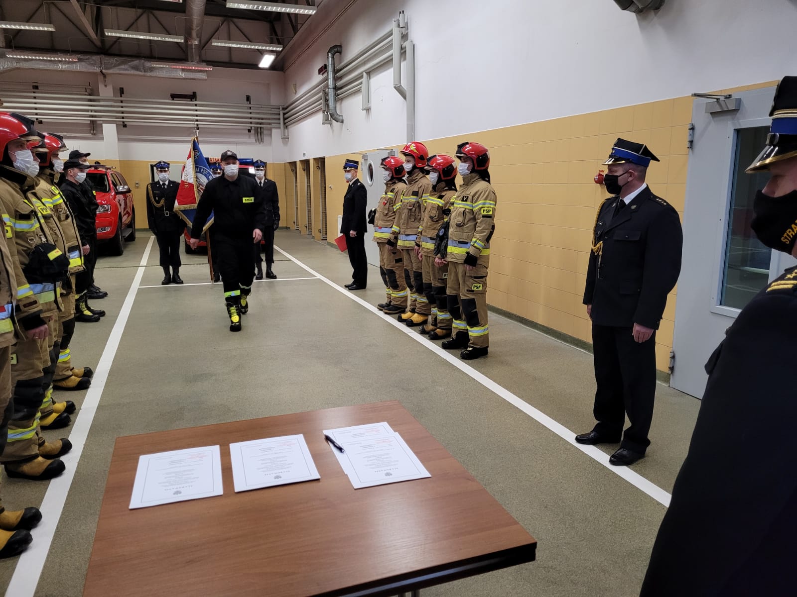 Akty ślubowania wręczył bryg. Janusz Leszczewski Komendant Powiatowy PSP w Nowym Dworze Gdańskim, życząc wielu sukcesów zawodowych wstępującym w szeregi Państwowej Straży Pożarnej funkcjonariuszom.