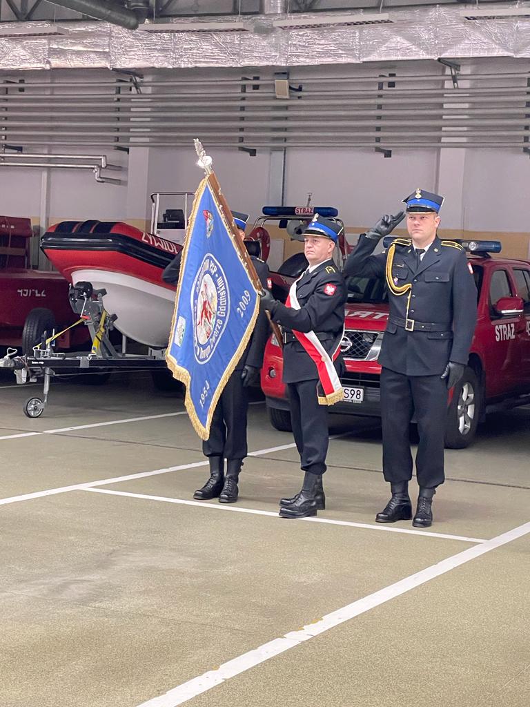 Podczas zbiórki odbyła się również ceremonia ślubowania nowo zatrudnionych funkcjonariuszy. Strażacy powtarzali słowa roty ślubowania po czym podpisali akt ślubowania.