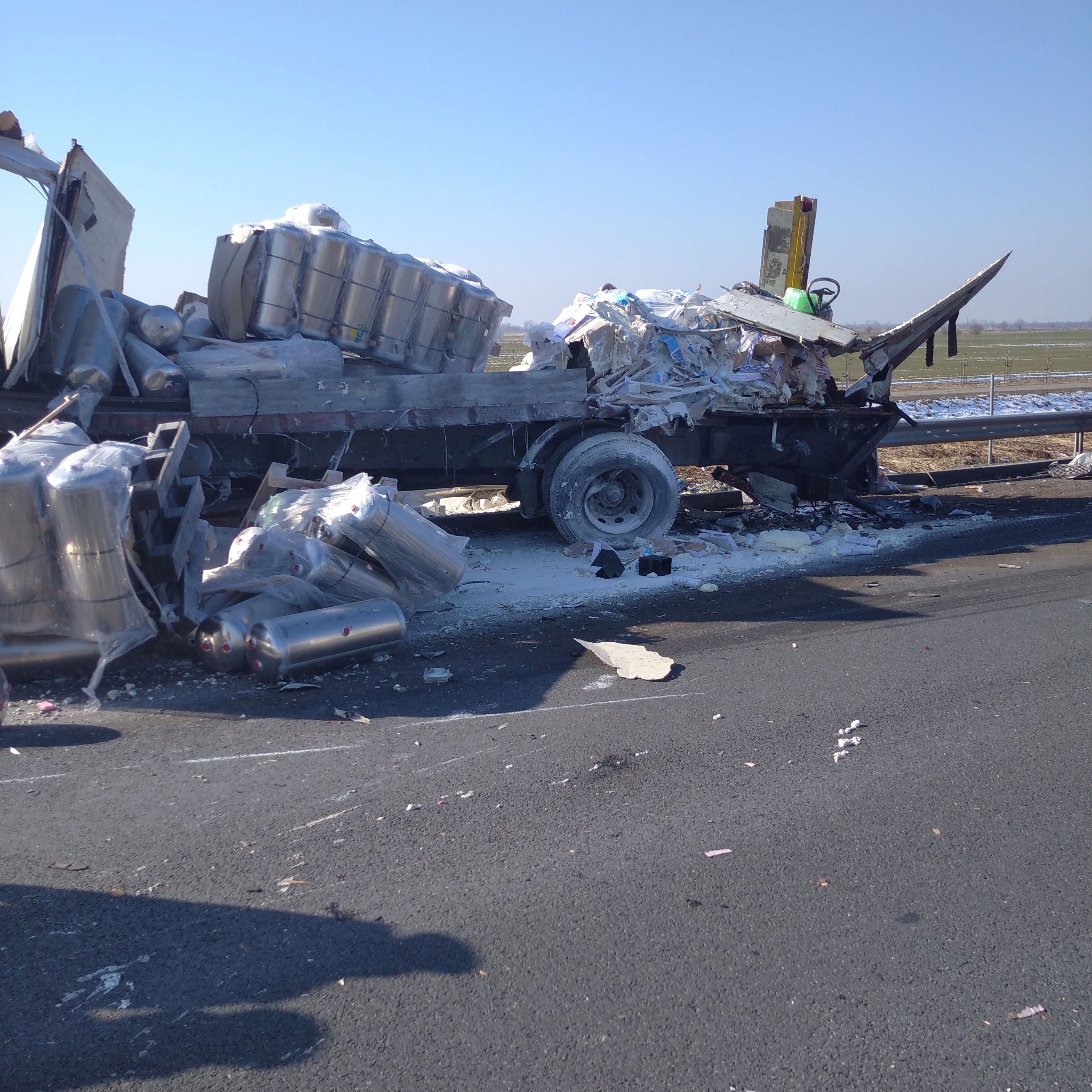 O godzinie 9:56 dnia 10.03.2021 Dyżurny Operacyjny Stanowiska Kierowania Komendanta Powiatowego w Nowym Dworze Gdańskim otrzymał zgłoszenie o wypadku na 32 km drogi ekspresowej S7. W wypadku brały udział dwa pojazdy: ciągnik siodłowy z naczepą i samochód ciężarowy.