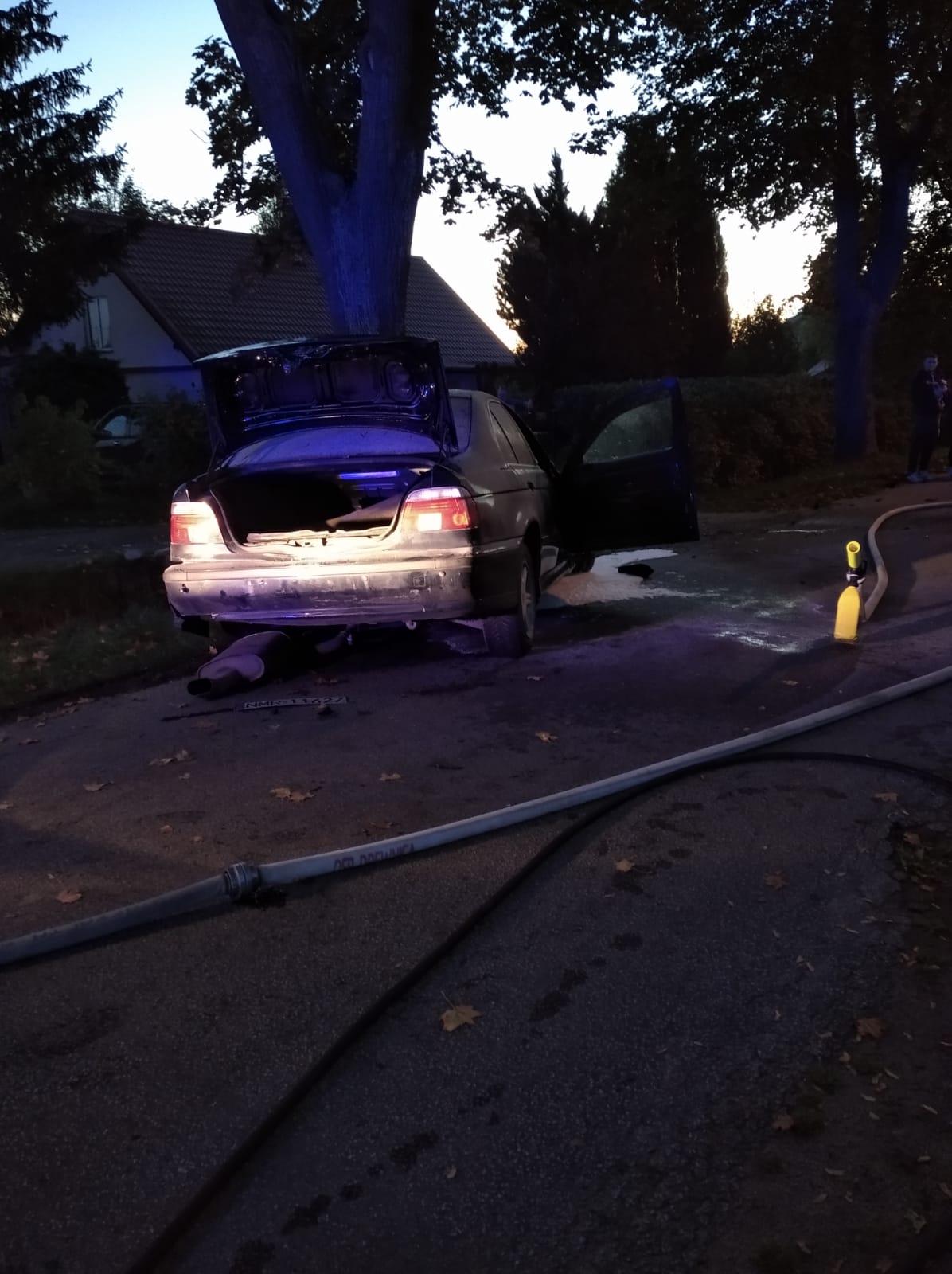 O godzinie 18:07 dnia 4.10.2022 Dyżurny Operacyjny Stanowiska Kierowania Komendanta Powiatowego w Nowym Dworze Gdańskim otrzymał zgłoszenie o wypadku w miejscowości Drewnica. Samochód osobowy po uderzeniu w drzewo znajdował się na poboczu drogi.