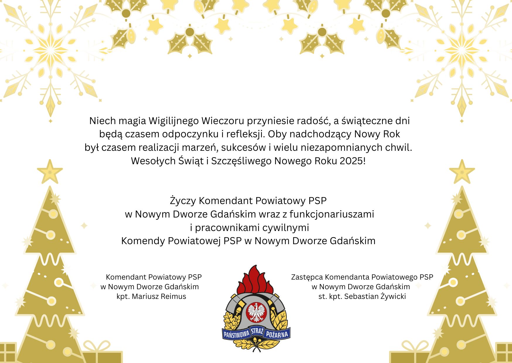 Życzenia świąteczno - noworoczne kierownictwa Komendy Powiatowej PSP w Nowym Dworze Gdańskim 23.12.2025