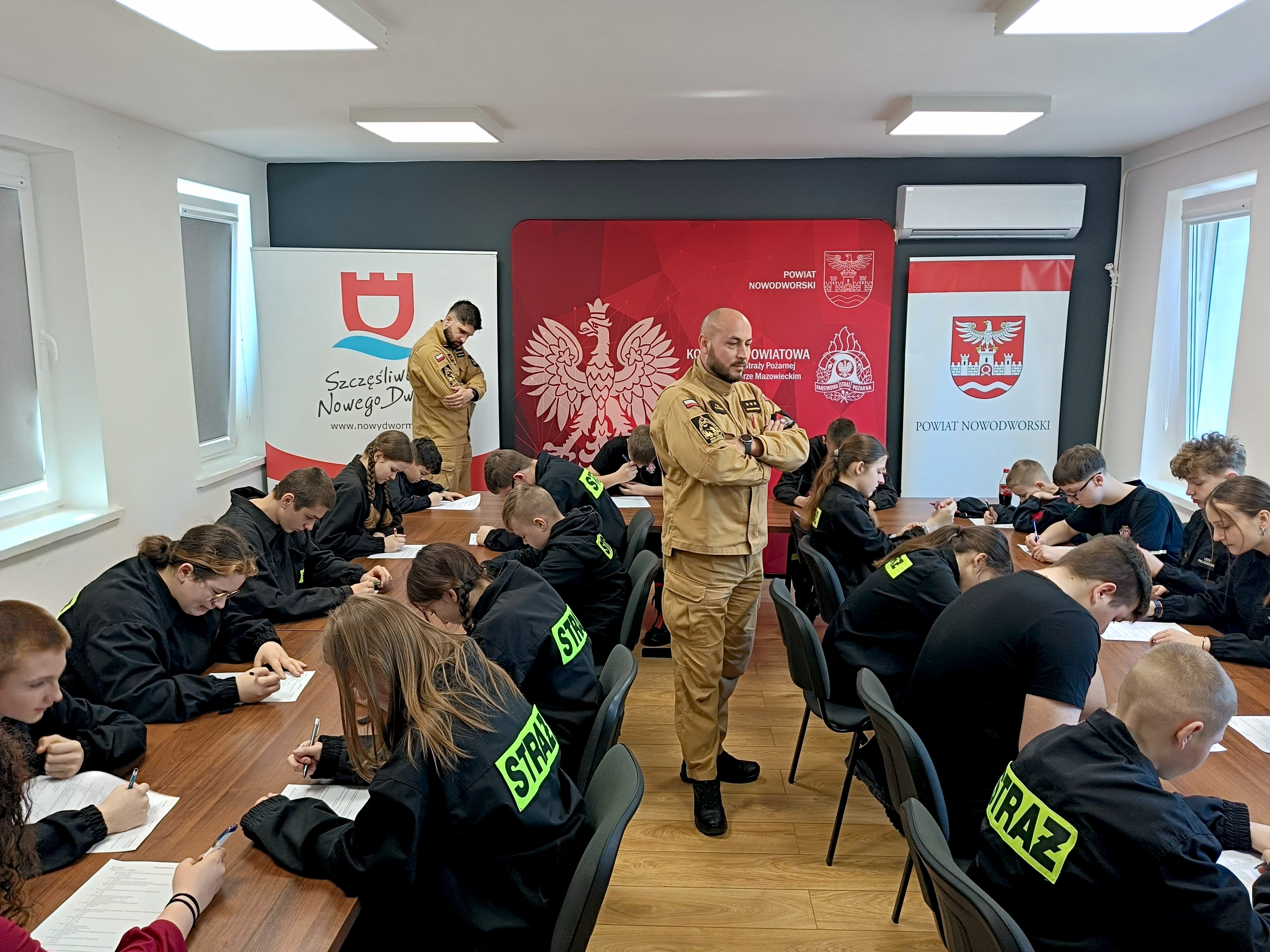 🚒 🚒 🚒 13 marca 2026 roku w siedzibie Komendy Powiatowej Państwowej Straży Pożarnej w Nowym Dworze Mazowieckim odbyły się eliminacje powiatowe Ogólnopolskiego Turnieju Wiedzy Pożarniczej pod hasłem „Młodzież zapobiega pożarom”. Turniej ten jest konkursem popularyzującym przepisy o ochronie przeciwpożarowej, kształtujący umiejętności w zakresie ratownictwa, ochrony ludności, zwierząt, środowiska naturalnego. W etapie powiatowym w 3 grupach wzięło udział 23 uczestników, którzy zgłosili swoją gotowość do uczestnictwa w konkursie. Dzieci i młodzież reprezentowali Młodzieżowe Drużyny Pożarnicze oraz Szkoły z terenu powiatu nowodworskiego.