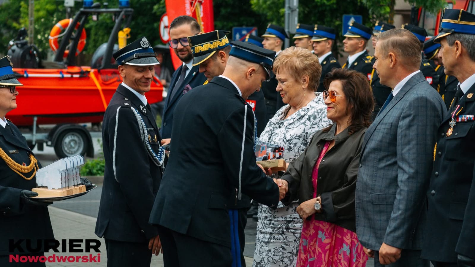 ✝ Uroczystość rozpoczęła się Mszą Świętą polowa, którą na placu przed Jednostką Ochotniczej Straży Pożarnej w Nowym Dworze Mazowieckim, w intencji wszystkich strażaków, odprawił Powiatowy Kapelan Strażaków ksiądz Tomasz Cymerman. Po zakończeniu Mszy Świętej, nastąpił 🚩 przemarsz Pocztów Sztandarowych, Pododdziałów oraz wszystkich uczestników na Plac Solny w Nowym Dworze Mazowieckim, gdzie oficjalnie rozpoczęły się Obchody Powiatowego Dnia Strażaka 2025. Apel rozpoczął się od meldunku złożonego nadbrygadierowi Arturowi Gonerze Mazowieckiemu Komendantowi Wojewódzkiemu Państwowej Straży Pożarnej przez Dowódcę Uroczystości st. kpt. Mateusza Pawłowskiego, po czym Mazowiecki Komendant Wojewódzki Państwowej Straży Pożarnej dokonał przeglądu pododdziałów. Podniesiono flagę 🇵🇱 państwową na maszt i odegrano hymn państwowy. Wszystkich przybyłych gości przywitał st. bryg. Stanisław Brzozowski - Komendant Powiatowy PSP w Nowym Dworze Mazowieckim. Pan Komendant podziękował nowodworskim strażakom z Państwowej Straży Pożarnej oraz Ochotniczych Straży Pożarnych, za ich codzienną służbę i zaangażowanie, za ciągłą gotowość do podejmowania działań tam, gdzie zachodzi potrzeba. Słowa podziękowań zostały również skierowane w stronę samorządów, ponieważ bez ich wsparcia nie byłoby możliwe realizowanie tych wszystkich wielkich przedsięwzięć. Jednym z ostatnich takich dokonań, było doposażenie Jednostki Ratowniczo-Gaśniczej w Nowym Dworze Mazowieckim w nowoczesną łódź ratowniczą Wally 455 w zestawie z przyczepą. St. bryg. Stanisław Brzozowski zaznaczył, że zakup tej łodzi byłby niemożliwy bez wsparcia Starostwa Powiatowego w Nowym Dworze Mazowieckim, Gminy Zakroczym, Gminy Czosnów, Gminy Leoncin oraz Gminy Nasielsk, za co Komendant złożył słowa podziękowania.