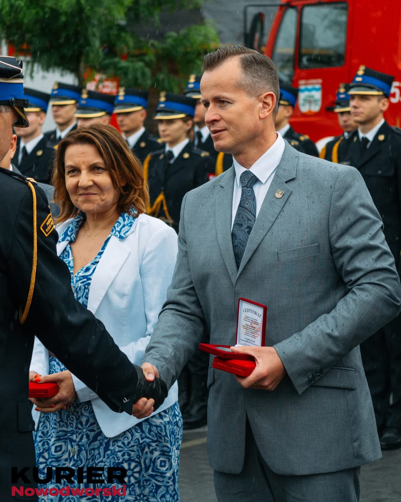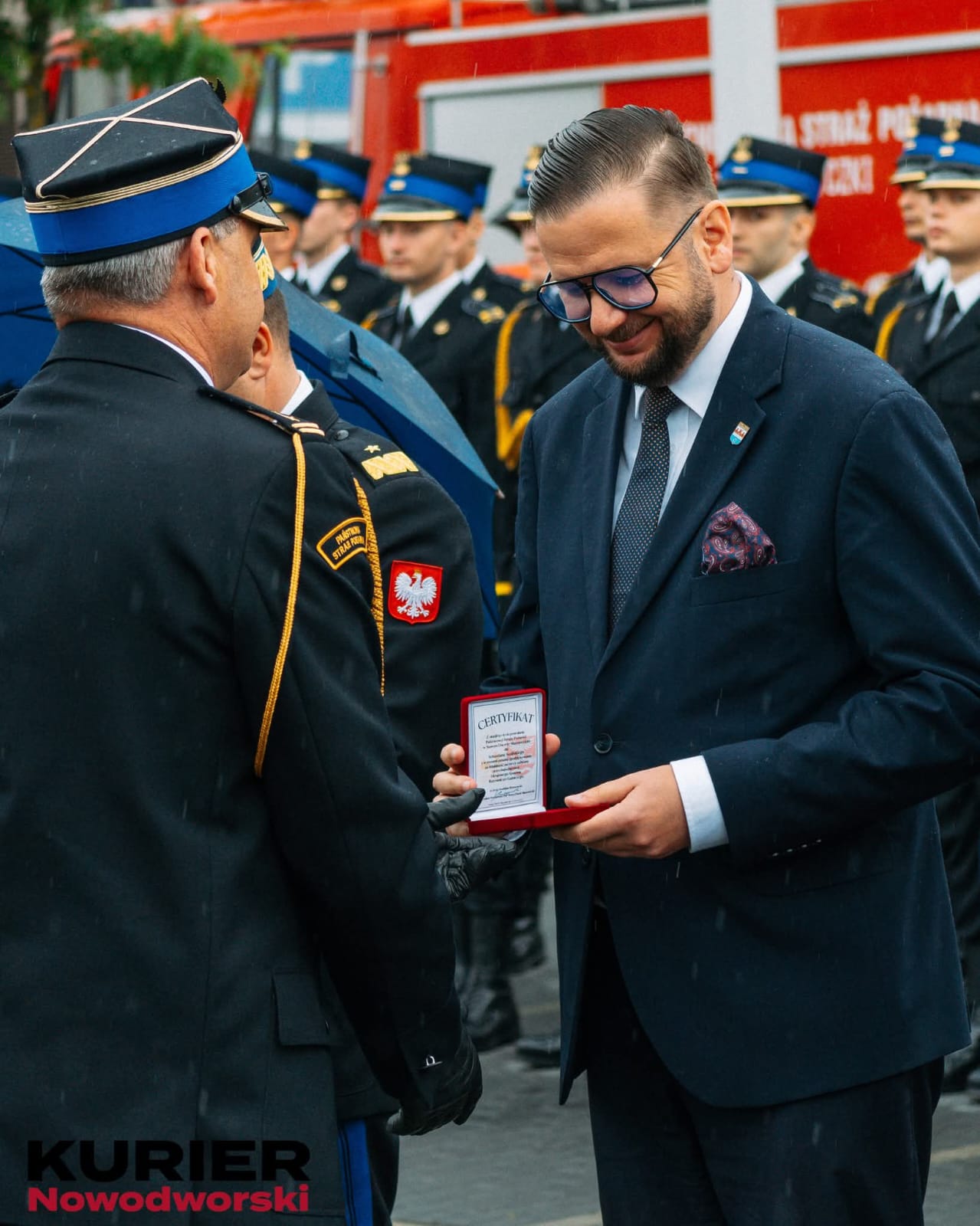 📜 Marszałek Województwa Mazowieckiego Pan Adam Struzik, wyróżnił medalem pamiątkowym „Pro Masovia”, za pracę na rzecz bezpieczeństwa, Komendę Powiatową Państwowej Straży Pożarnej w Nowym Dworze Mazowieckim oraz Ochotniczą Straż Pożarną w Nowym Dworze Mazowieckim. W imieniu Pana Marszałka, wyróżnienia wręczył Pan Radosław Rybicki - Dyrektor Departamentu Rolnictwa i Rozwoju Obszarów Wiejskich.