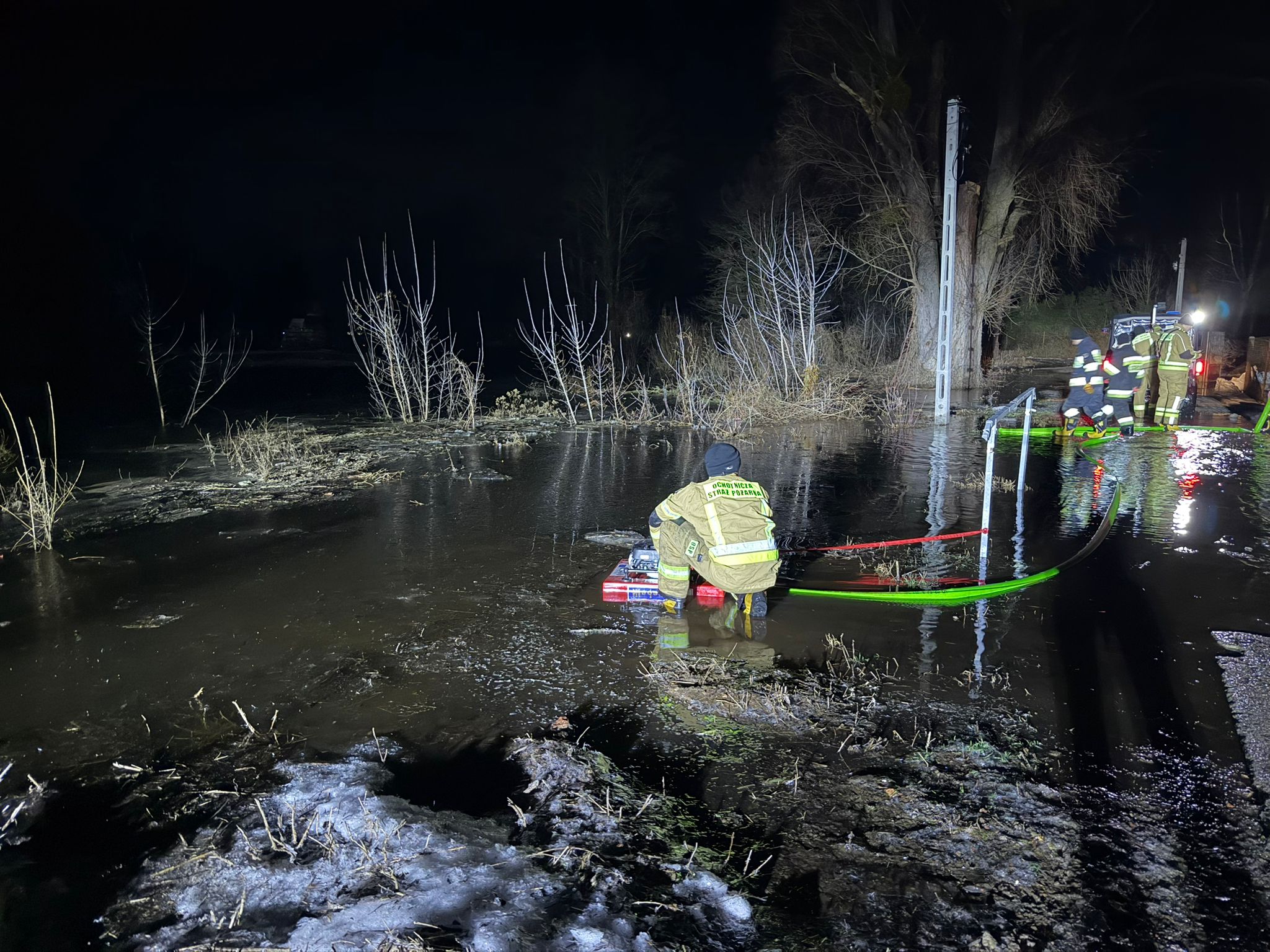 Działania przeciwpowodziowe Służb Ratowniczych, w związku z zatorem lodowym oraz wystąpieniem z koryta Rzeki Wkra