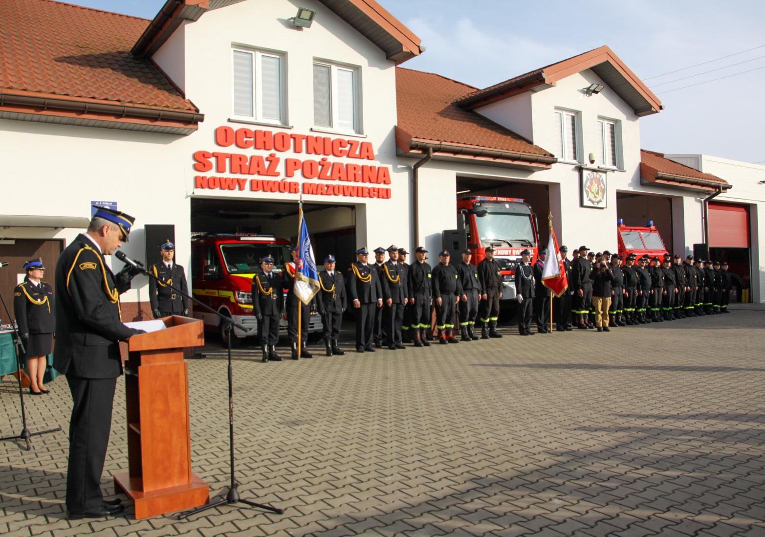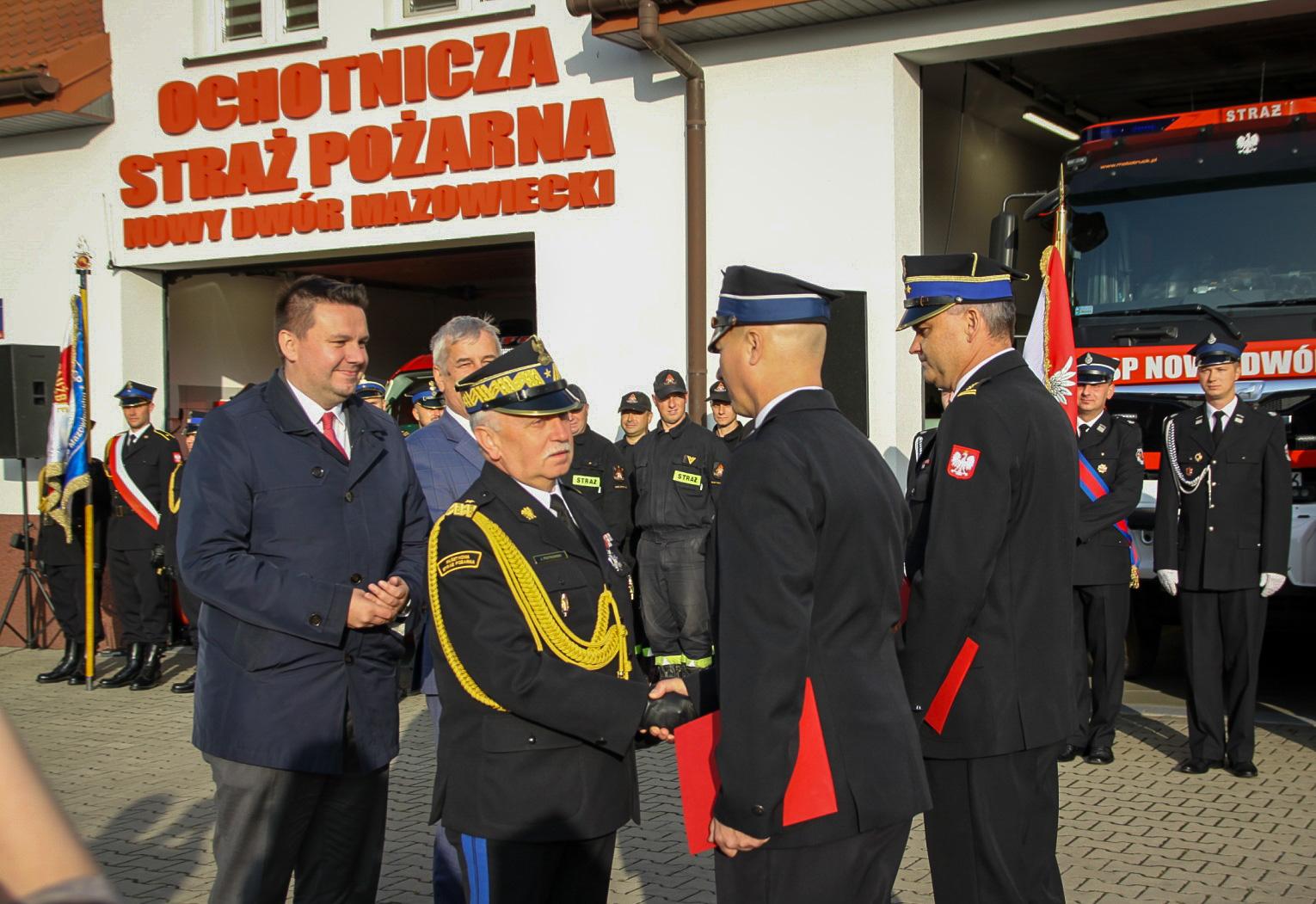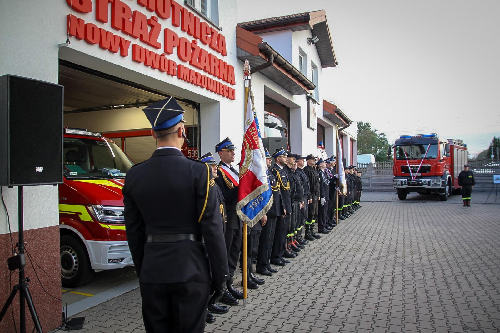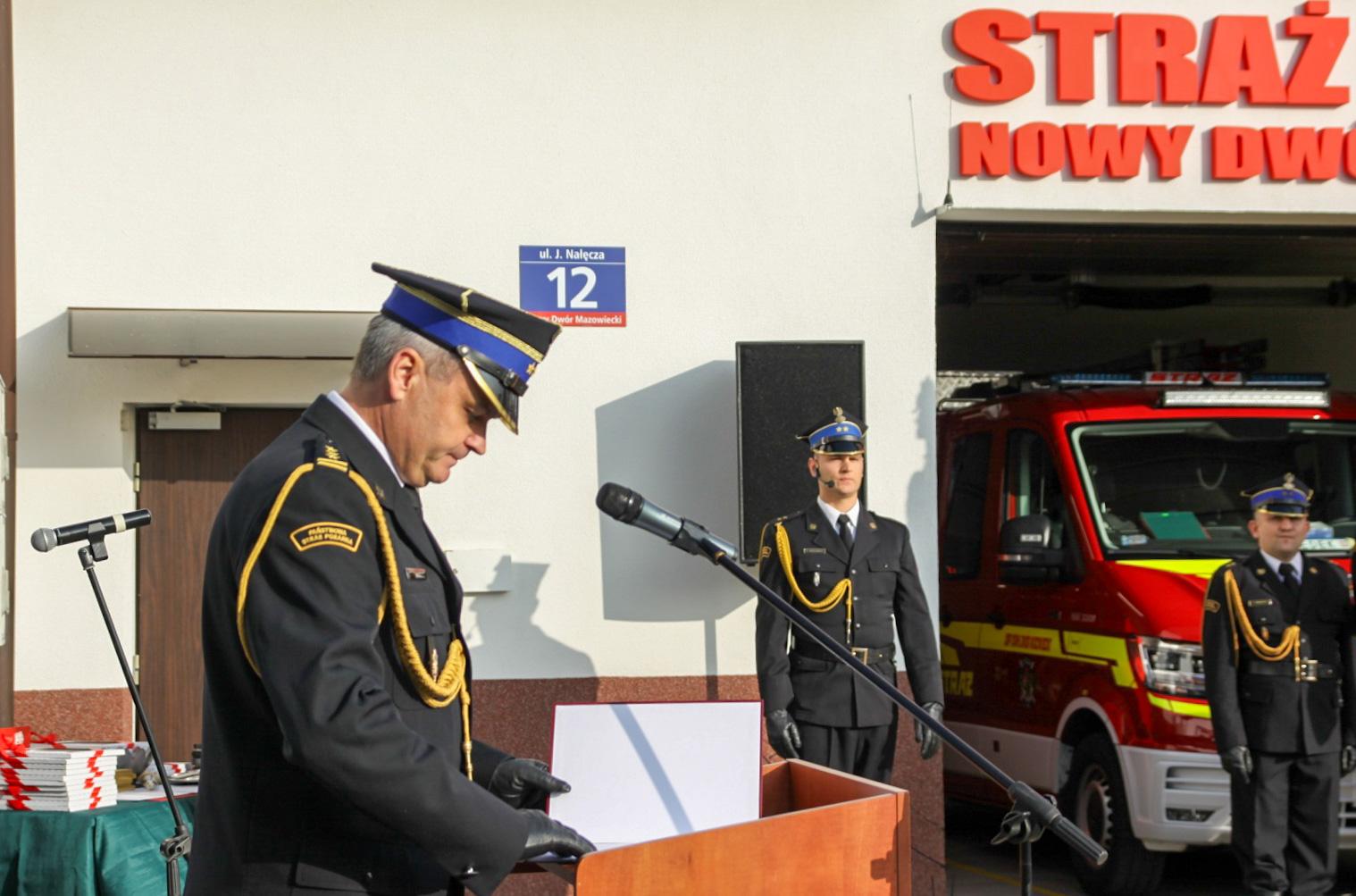 Po przywitaniu przybyłych gości przez Komendanta Powiatowego PSP w Nowym Dworze Mazowieckim st. bryg. Stanisława Brzozowskiego, nastąpiło uroczyste wręczenie aktów przekazania pojazdów pożarniczych dla Komendy Powiatowej PSP w Nowym Dworze Mazowieckim oraz dla Ochotniczej Straży Pożarnej w Nowym Dworze Mazowieckim.