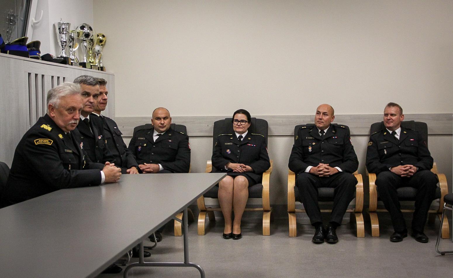 Po uroczystości Mazowiecki Komendant Wojewódzki nadbryg. Jarosław Piotrowski odwiedził strażaków z KP PSP w Nowym Dworze Mazowieckim. Po oprowadzeniu przez Kierownictwo tut. Komendy, Pan Komendant spotkał się ze strażakami pełniącymi służbę w Jednostce Ratowniczo-Gaśniczej. Mazowiecki Komendant Wojewódzki podczas spotkania rozmawiał ze strażakami o sprawach bieżących związanych z pełnieniem służby w Państwowej Straży Pożarnej oraz podziękował za zaangażowanie wkładane każdego dnia w ochronę przeciwpożarową.