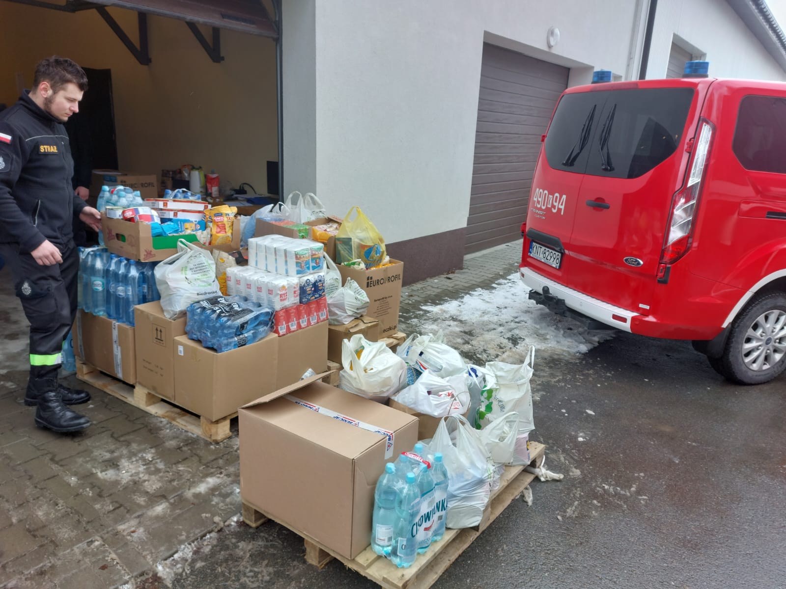 Strażacy pełniący służbę w Jednostce Ratowniczo –Gaśniczej w Nowym Targu z wielką ochotą i dużym zaangażowaniem przystąpili do humanitarnej akcji pomocy dla potrzebujących Ukraińców. Zebrane dary żywnościowe, chemię gospodarczą i inne przekazano do Powiatowego Magazynu Pomocy przy szpitalu w Nowym Targu. Część zebranych rzeczy zostanie za pomocą Rządowej Agencji Rezerw Strategicznych przekazana specjalnym transportem do Ukrainy a część rozdysponowana dla uchodźców zamieszkujących nasz powiat. Bardzo dziękujemy wszystkim za hojny „DAR SERCA” i wielkie zrozumienie trudnej sytuacji.