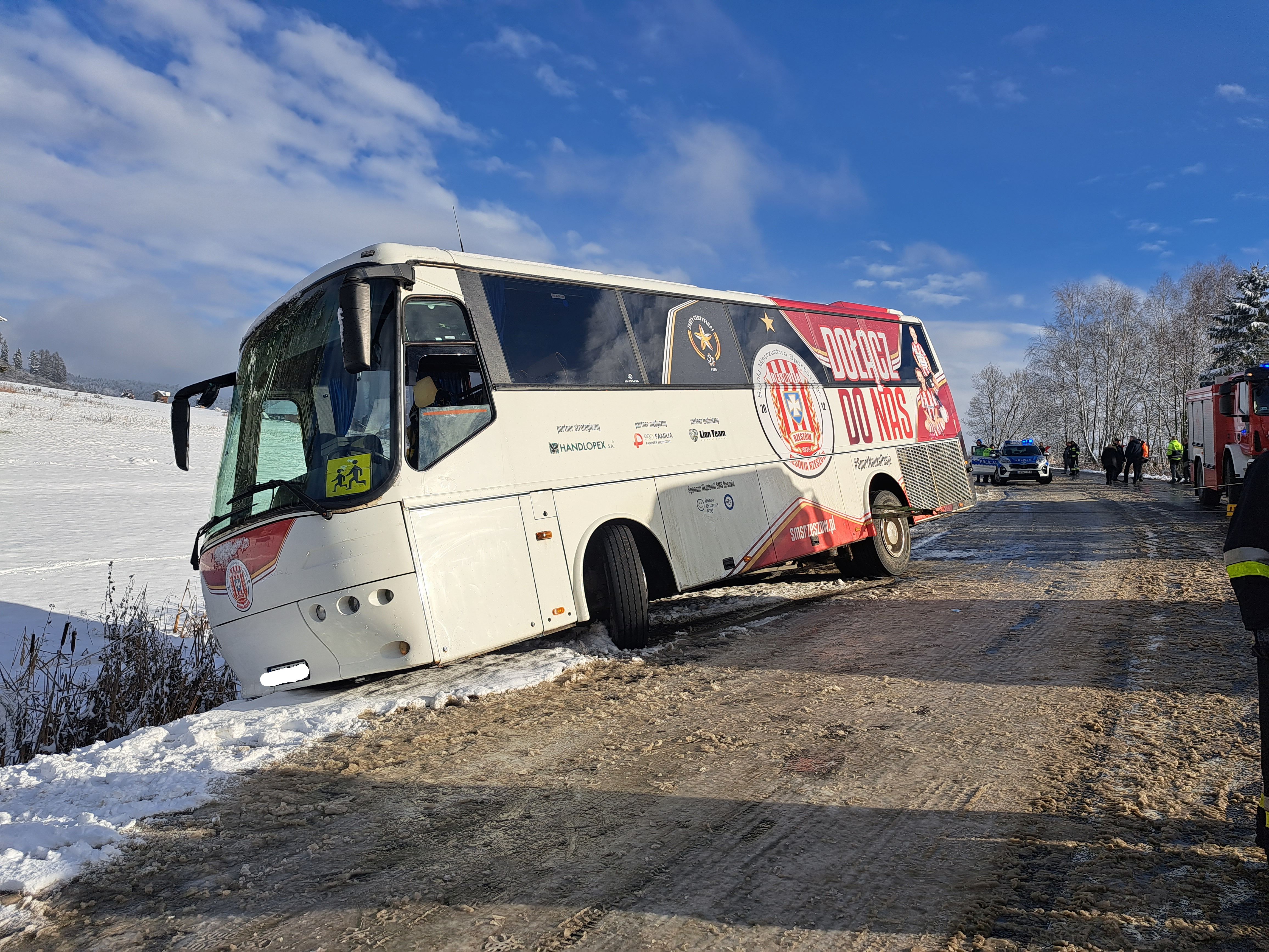 Autobus zsunął się z drogi