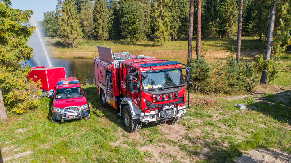 Ćwiczenia miały na celu zapoznanie z drogami dojazdowymi na ww. terenie w lesie, rozpoznanie możliwości wykorzystania do celów przeciwpożarowych zbiorników wody zlokalizowanych na tym terenie. Sprawdzono praktycznie dojazd m.in. do tych zbiorników oraz możliwość poboru i podawania wody z ww. zbiorników w przypadku ewentualnego pożaru lasu w tym obrębie. W ćwiczeniach wykorzystano jeden z nowych nabytków tutejszej Jednostki Ratowniczo Gaśniczej samochód w konfiguracji do gaszenia pożarów w terenach leśnych i trudno dostępnych średni gaśniczy na podwoziu Iveco 4x4 GBA 2,5/26 wraz z m.in. przenośnym działkiem wodno pianowych sterowanym z bezprzewodowego pilota.