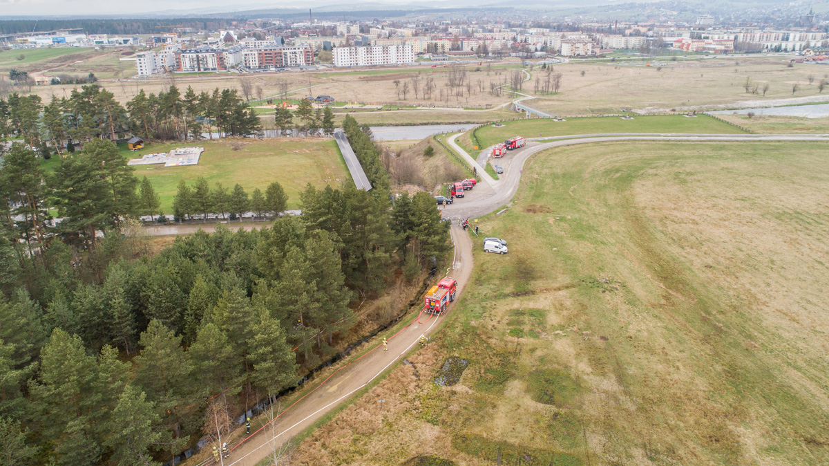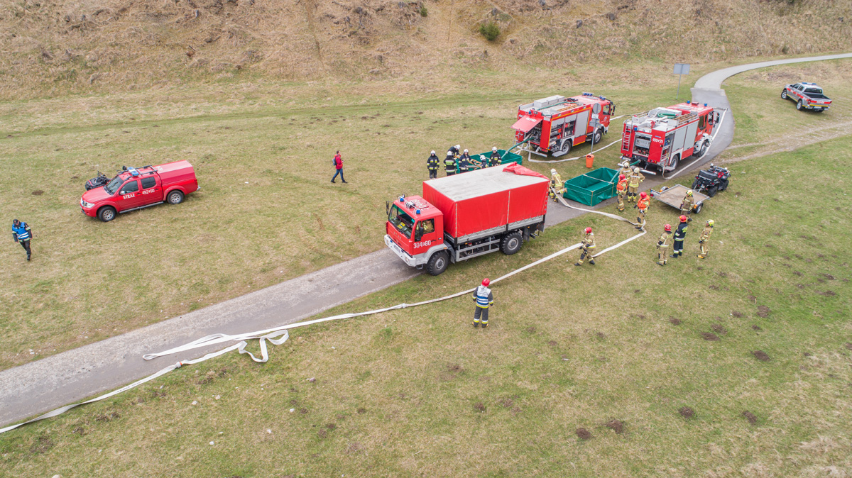 Tematem ćwiczeń było współdziałanie podmiotów krajowego systemu ratowniczo - gaśniczego podczas działań związanych z pożarem lasu i torfowiska oraz realizacja dostarczania wody na duże odległości i utrzymanie gwarantowanego zaopatrzenia wodnego.
