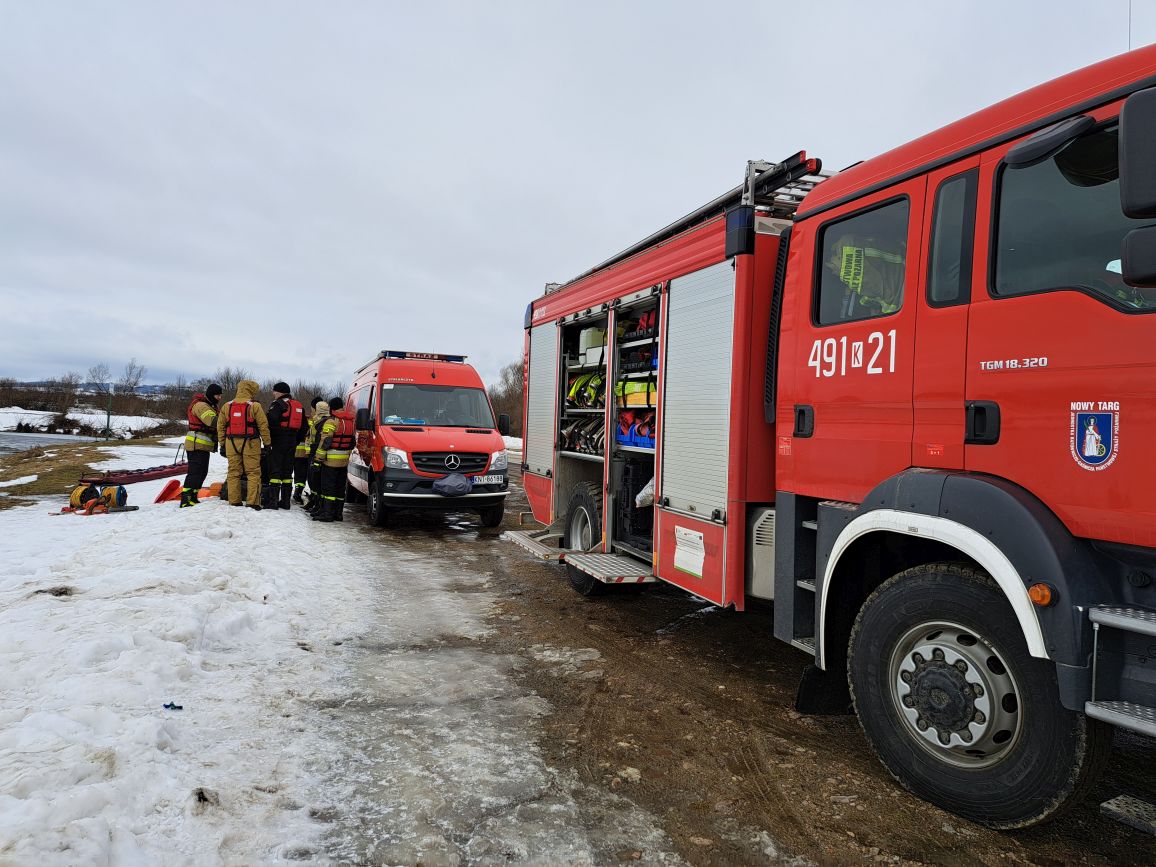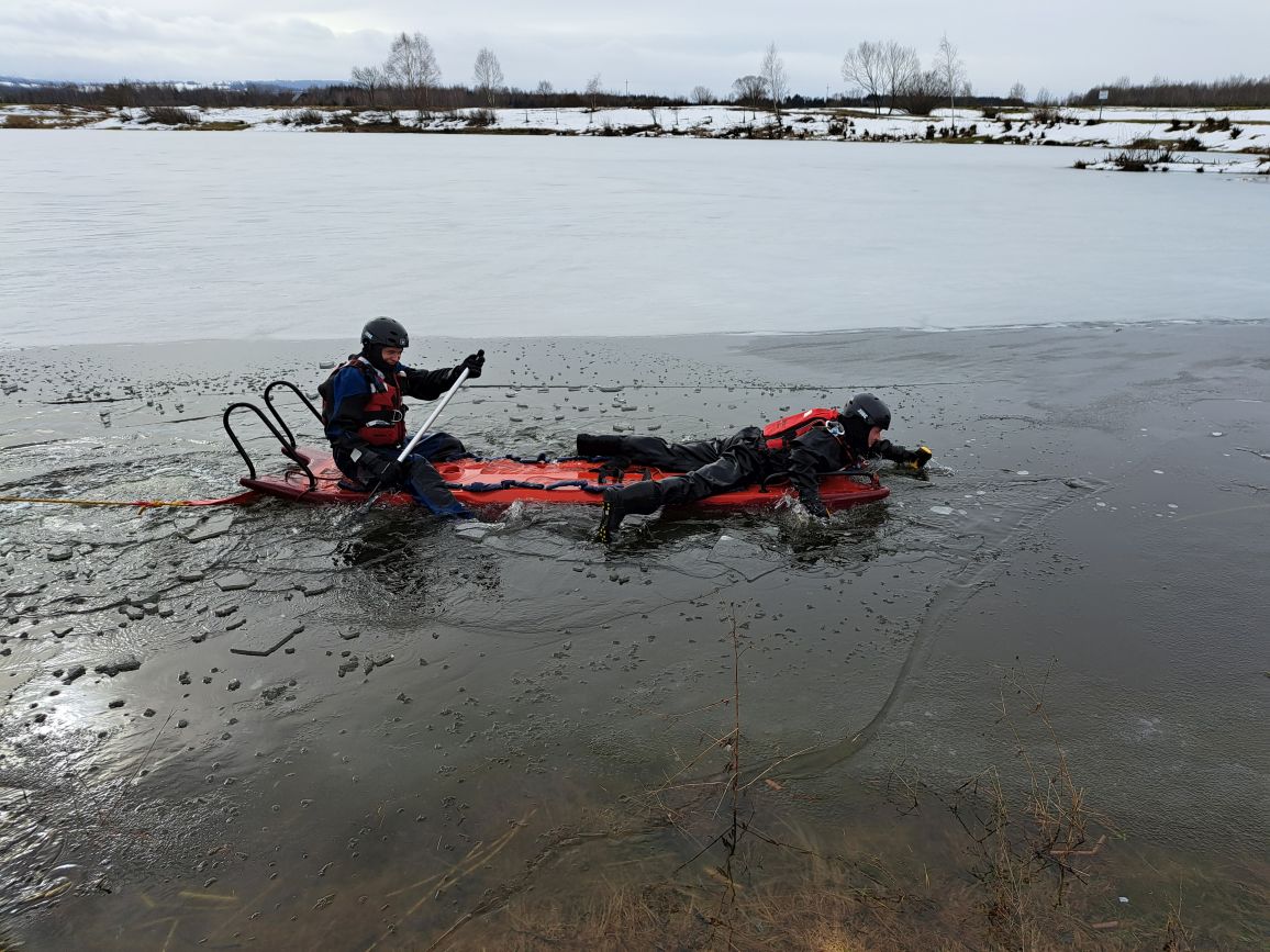 W dniu 20.02.2023 r. w ramach realizacji doskonalenia zawodowego strażacy Jednostki Ratowniczo Gaśniczej w Nowym Targu realizowali ćwiczenia z ratownictwa wodnego i lodowego. W ramach działań podstawowych i specjalistycznych Specjalistycznej Grupy Ratownictwa Wodno Nurkowego ćwiczyli ratownictwo w warunkach zimowych na zamarzniętych akwenach.