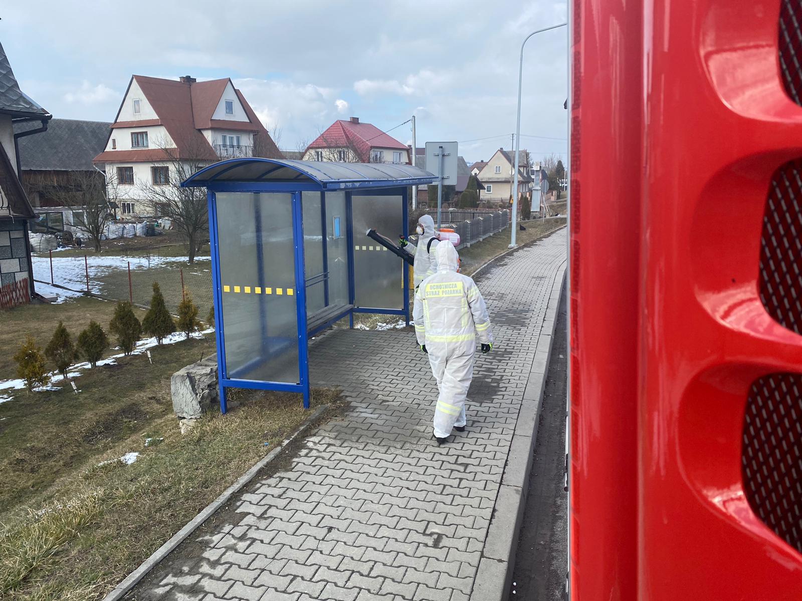 W związku z tendencją wzrostową zakażeń koronawirusem w weekend 5-7 marca br. strażacy jednostek OSP powiatu nowotarskiego przeprowadzili dezynfekcję miejsc publicznych.