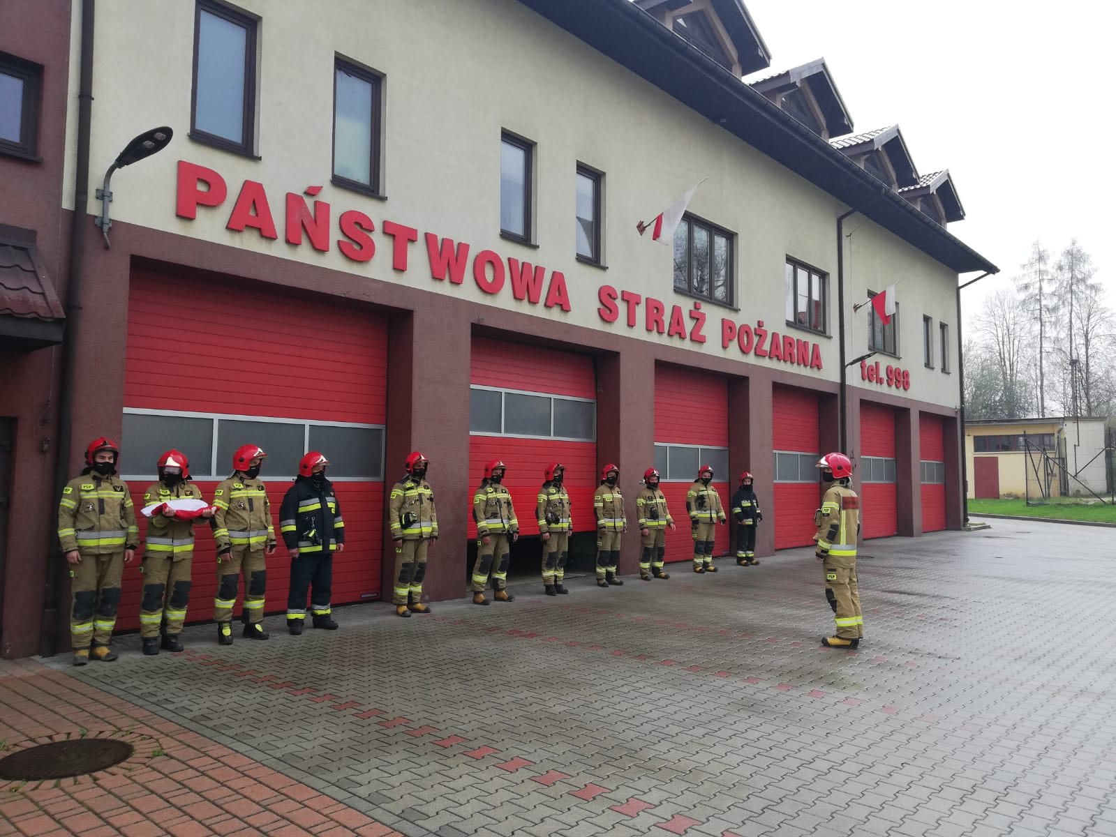 Dzień flagi państwowej w KP PSP Nowy Targ.