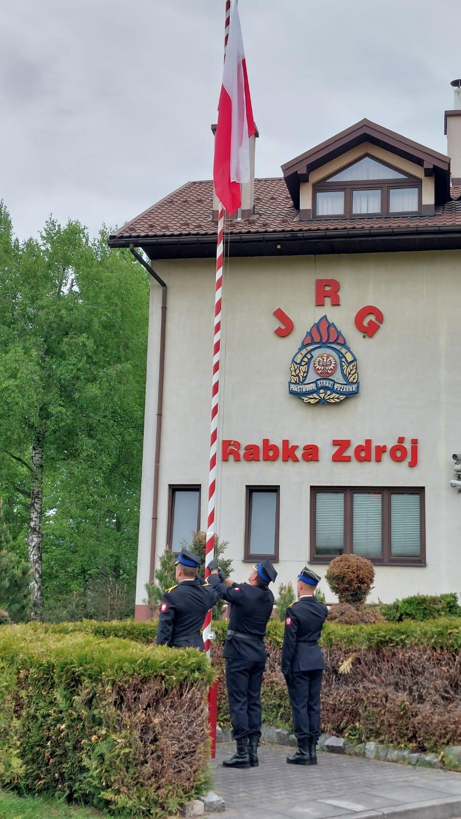 Z okazji przypadającego w dniu 02 maja 2024 Dnia Flagi Rzeczypospolitej Polskiej podczas zmiany służby w Jednostkach Ratowniczo Gaśniczych w Nowym Targu i Rabce Zdroju odbyło się uroczyste podniesienie flagi państwowej na maszt.