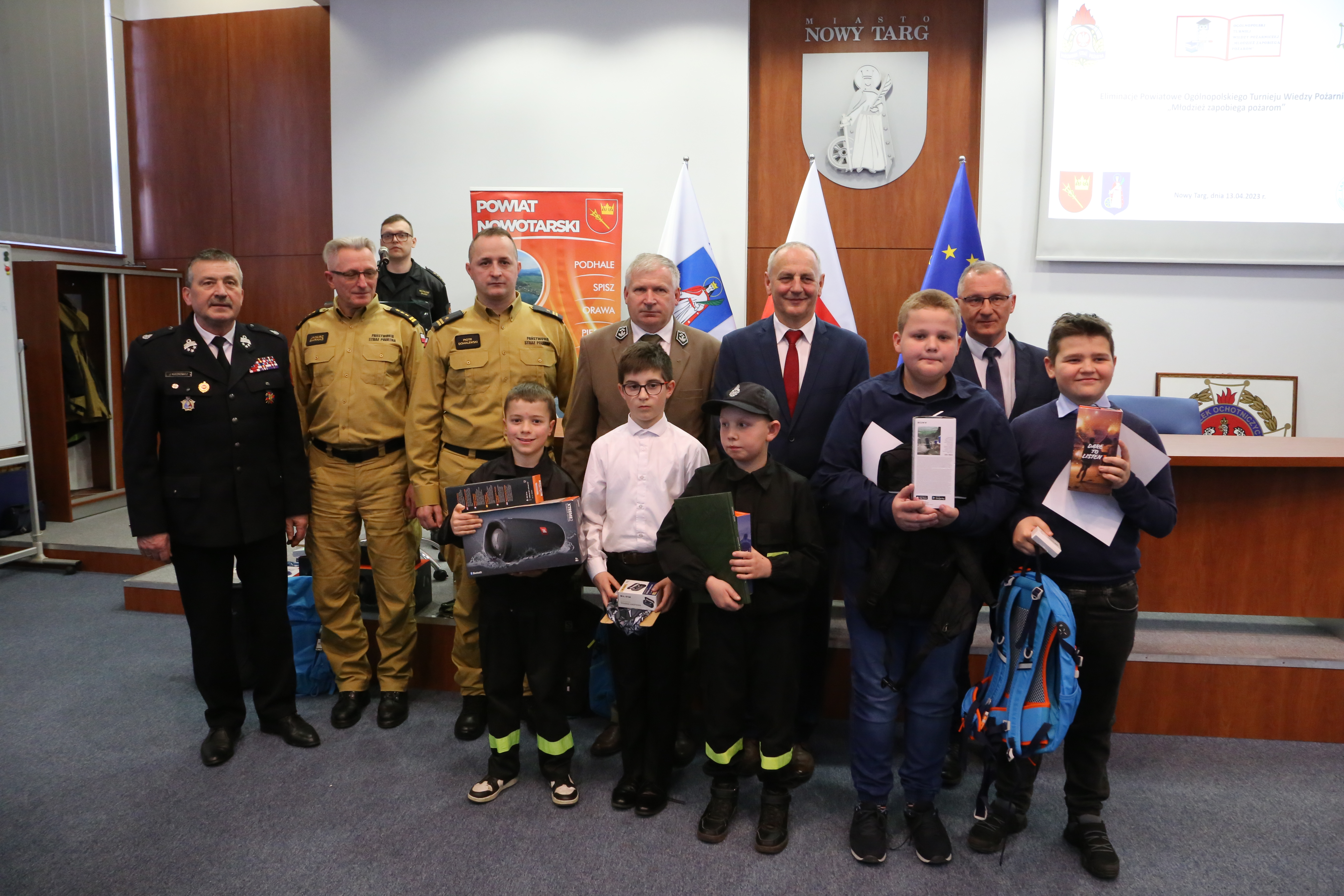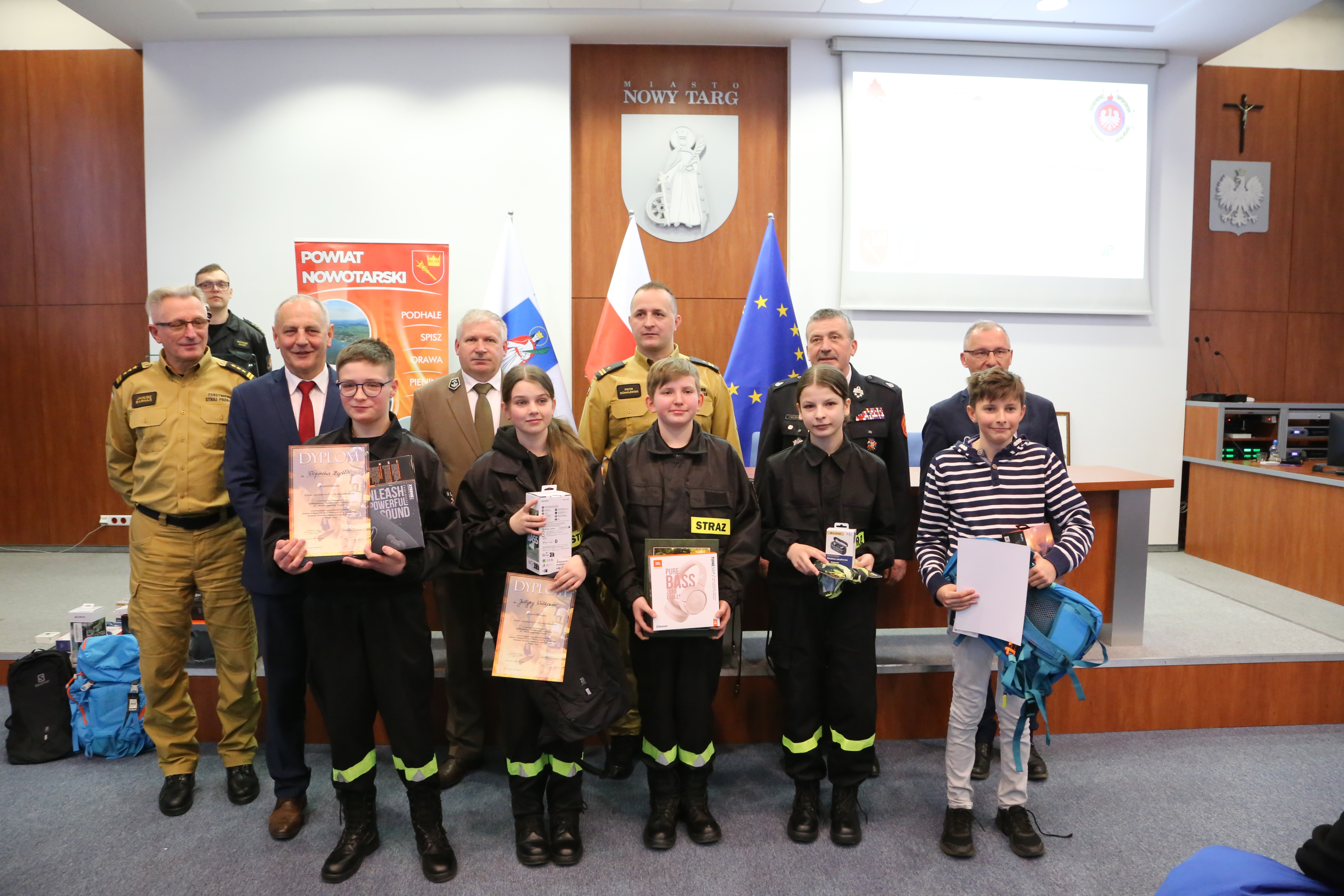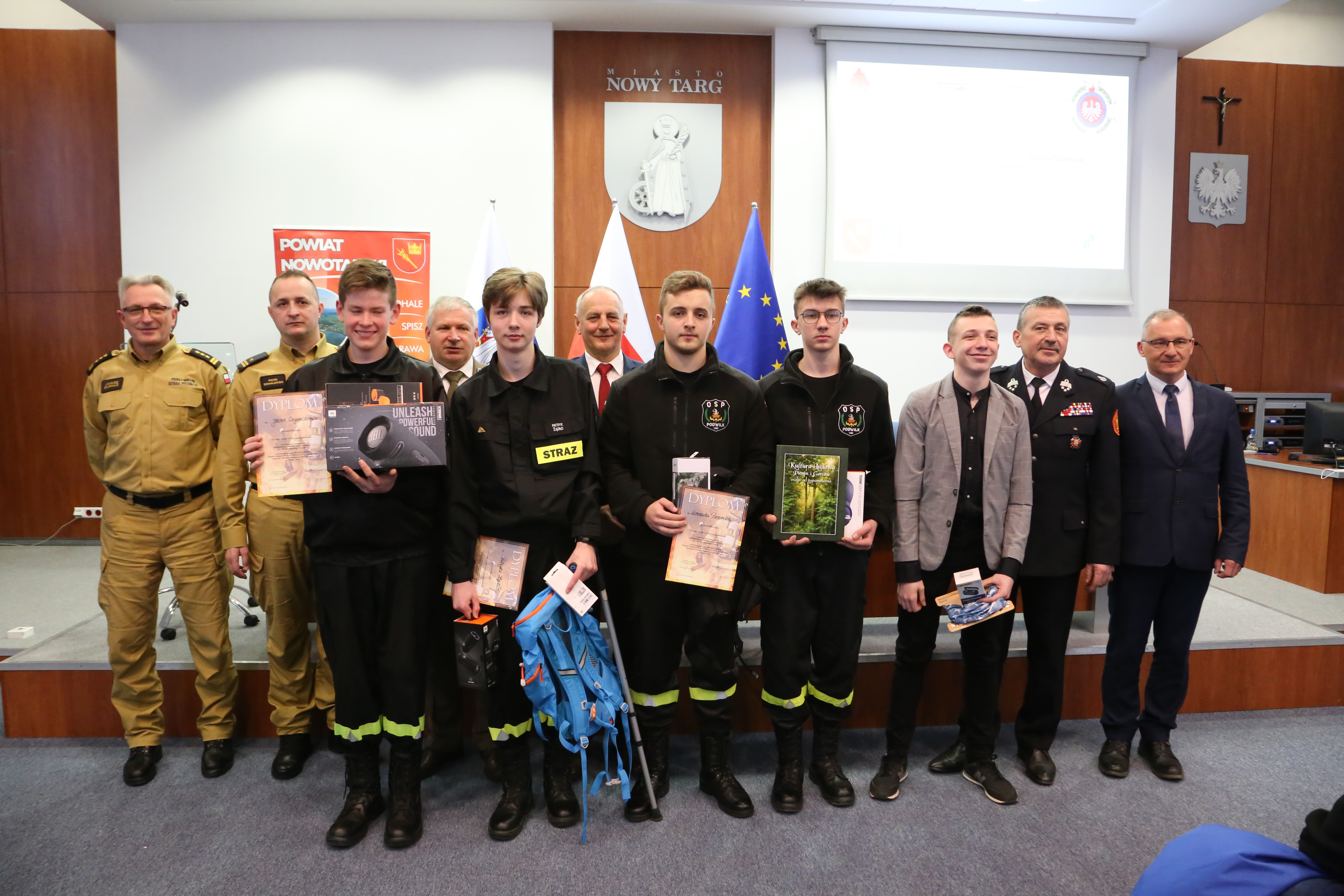 Nagrody zwycięzcom wręczyli: Starosta Nowotarski Krzysztof Faber, Wiceburmistrz Nowego Targu Waldemar Wojtaszek, Nadleśniczy Nadleśnictwa Nowy Targ Józef Oskwarek, Komendant Powiatowy PSP w Nowym Targu mł. bryg. Piotr Domalewski i Prezes Zarządu Oddziału Powiatowego ZOSP RP w Nowym Targu dh Jan Kuczkowicz.