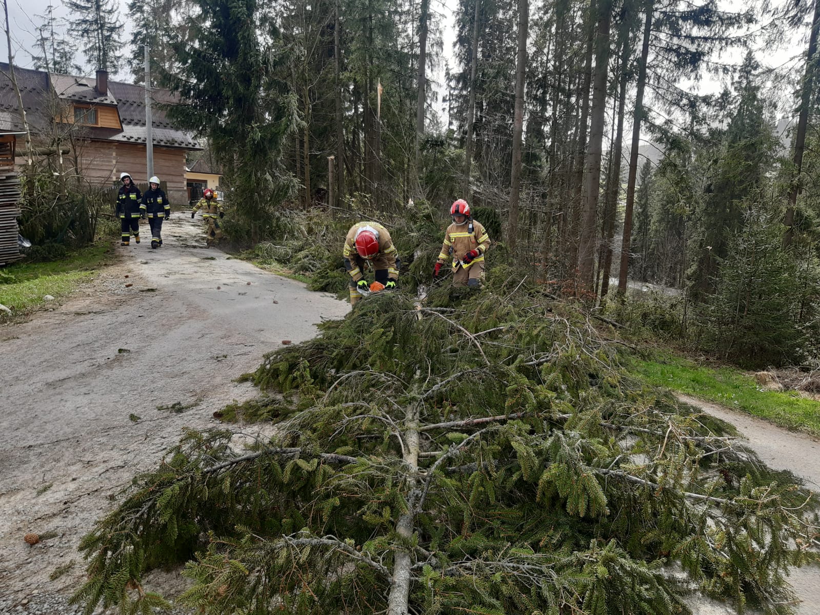 W dniu 01.04.2024 do godziny 05:30 dnia 02.04.2024, na terenie powiatu nowotarskiego odnotowano 146 interwencji straży pożarnych związanych z silnymi wiatrami. Były to w większości połamane drzewa, konary i zerwane dachy na budynkach gospodarczych. Do tragicznego w skutkach zdarzenia doszło w miejscowości Rabka - Zdrój, gdzie w praku zdrojowym drzewo przygniotło trzy osoby. W wyniku obrażeń, mimo podjętych działań medycznych, wszystkie trzy osoby poniosły śmierć. Dla rodzin poszkodowanych w tym tragicznym zdarzeniu zapewnione zostało wsparcje psychologa.