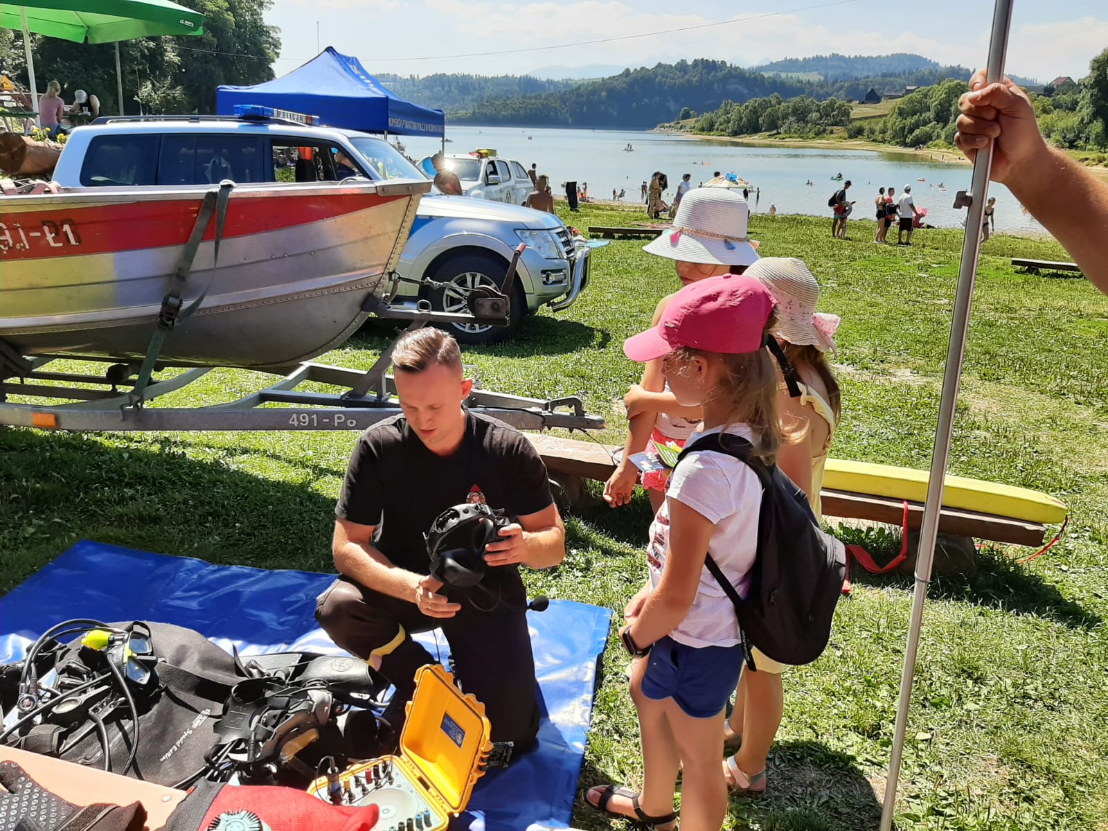 W dniu 08.08.2022 r. wspólnie z Komendą Powiatową Policji w Nowym Targu realizowaliśmy działania prewencyjne w ramach kampanii Kręci Mnie Bezpieczeństwo Nad Wodą. Osoby wypoczywające nad Jeziorem Czorsztyńskim mogły się zapoznać z pracą służb ratowniczych, oraz zasadami bezpiecznego i zdrowego wypoczynku nad wodą.