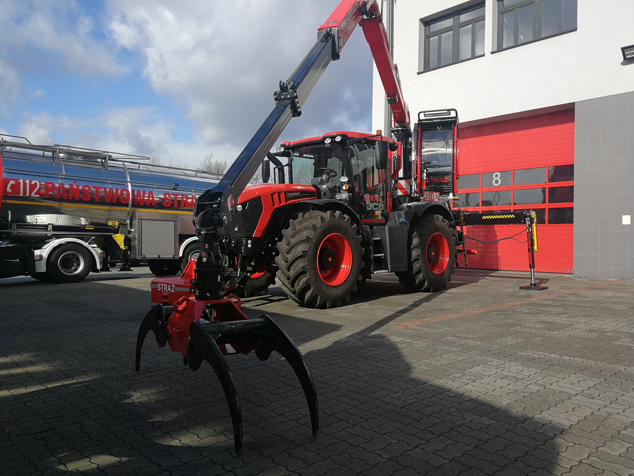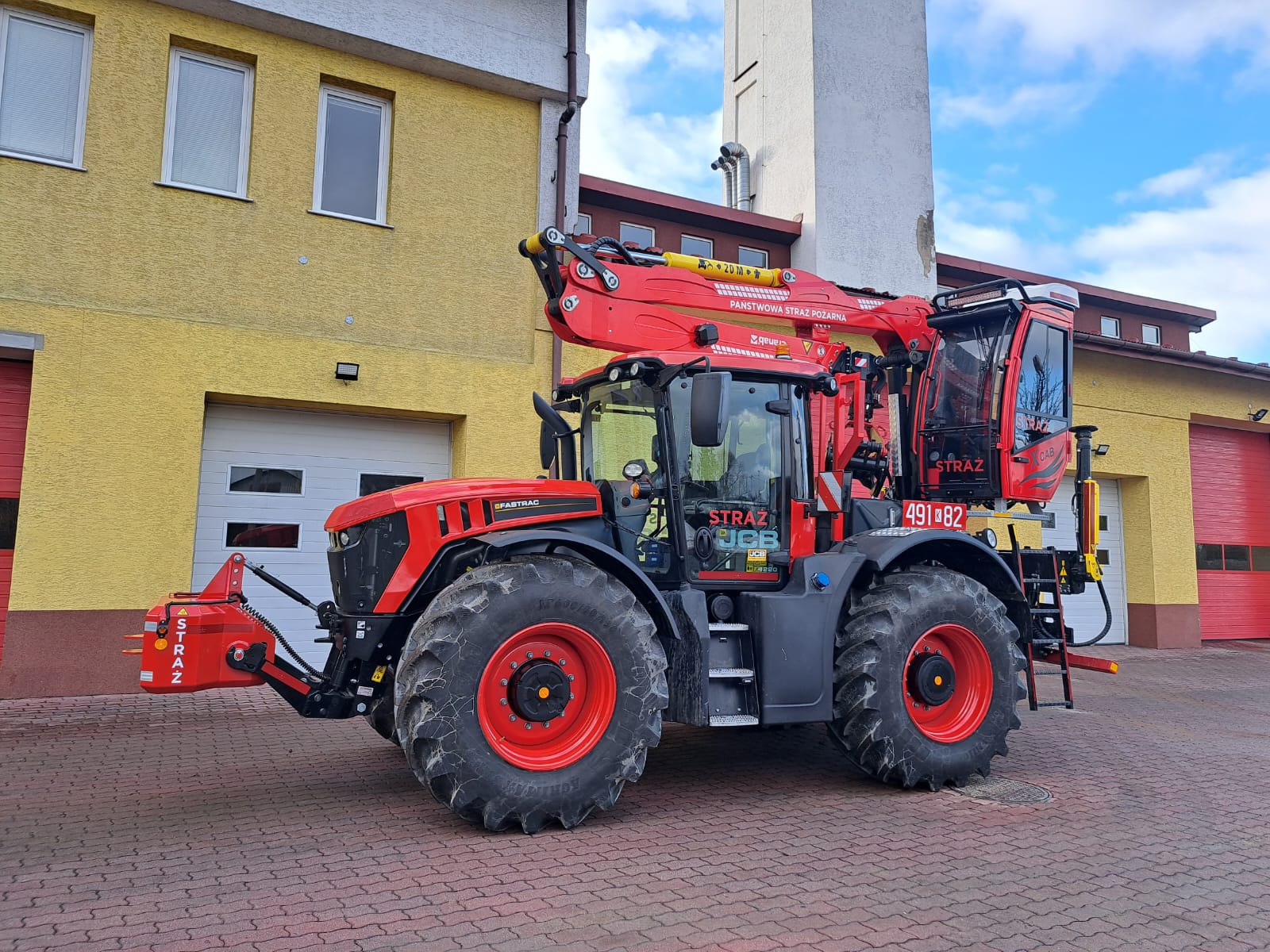 W dniu 21.02.2023 w siedzibie Komendy Wojewódzkiej Państwowej Straży Pożarnej w Krakowie odbyło się przekazanie nowego pojazdu JCB FASTRAC 4220 dla KP PSP Nowy Targ.