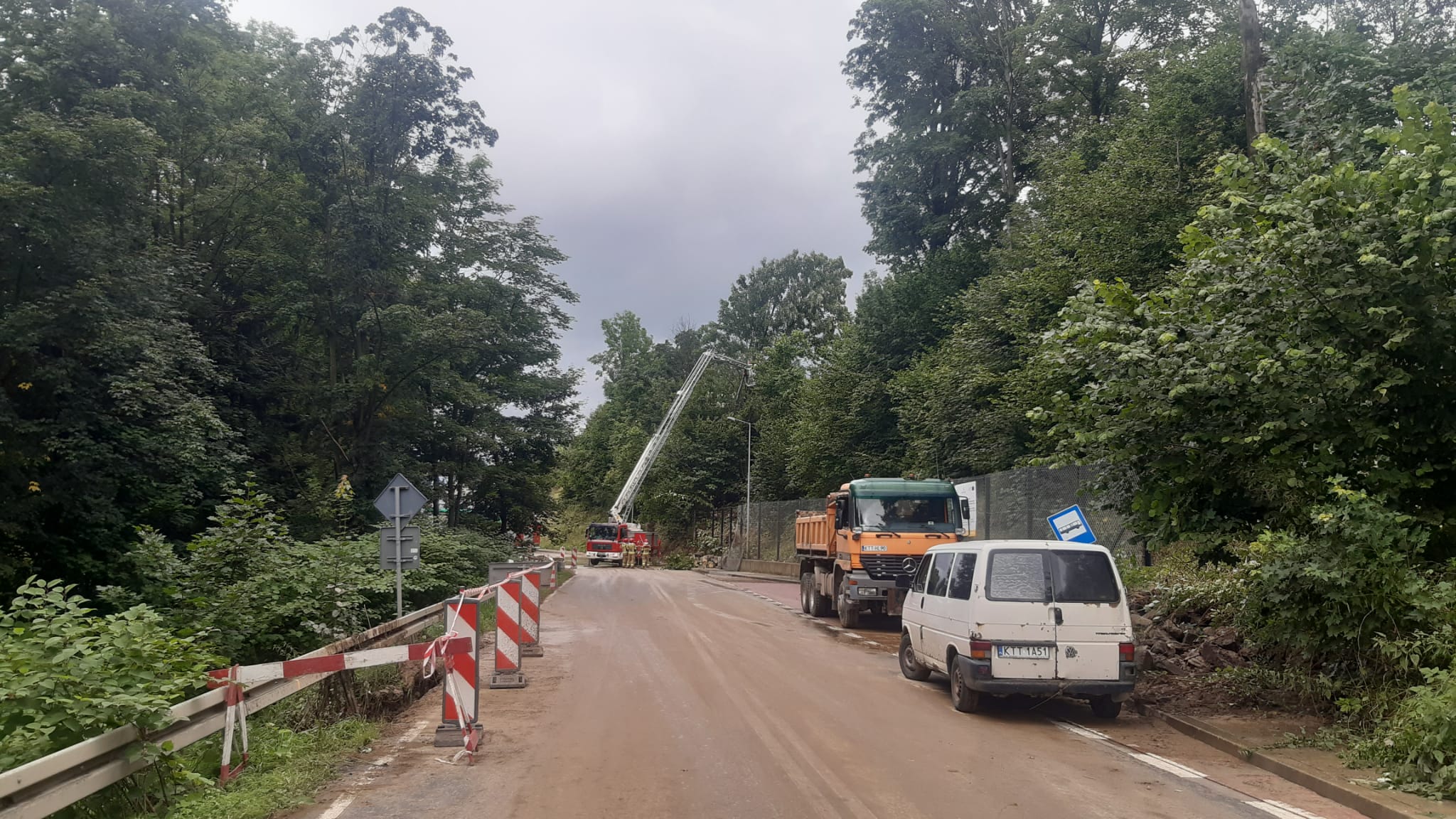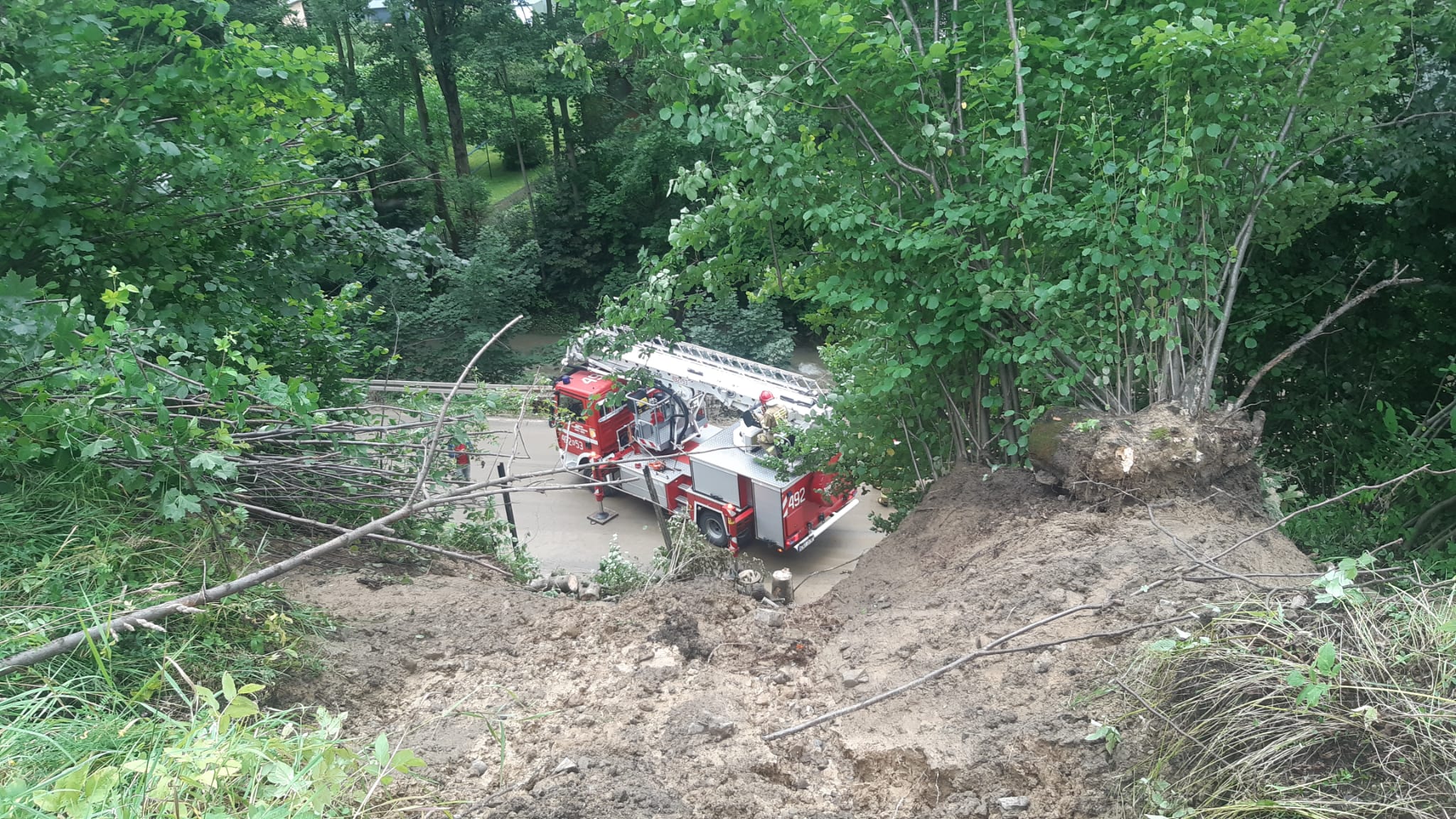W wyniku intensywnych opadów atmosferycznych doszło do osunięcia ziemi obok nasypu kolejowego i na drogę wojewódzką nr 958. Zwały ziemi i pnie drzew całkowicie zablokowały drogę. Samochody kierowane są objazdem drogami lokalnymi, a Polskie Koleje Państwowe zdecydowały o wstrzymaniu ruchu (kolejowego) na trasie Chabówka – Nowy Targ. Na miejscu prowadzone są działania Straży Pożarnej i Wojewódzkiego Zarządu dróg, poprzez usuwanie ziemi nie tylko z drogi ale też z koryta pobliskiej rzeki Raby, a także pojedyncze drzewa z naruszonym systemem korzeniowym.