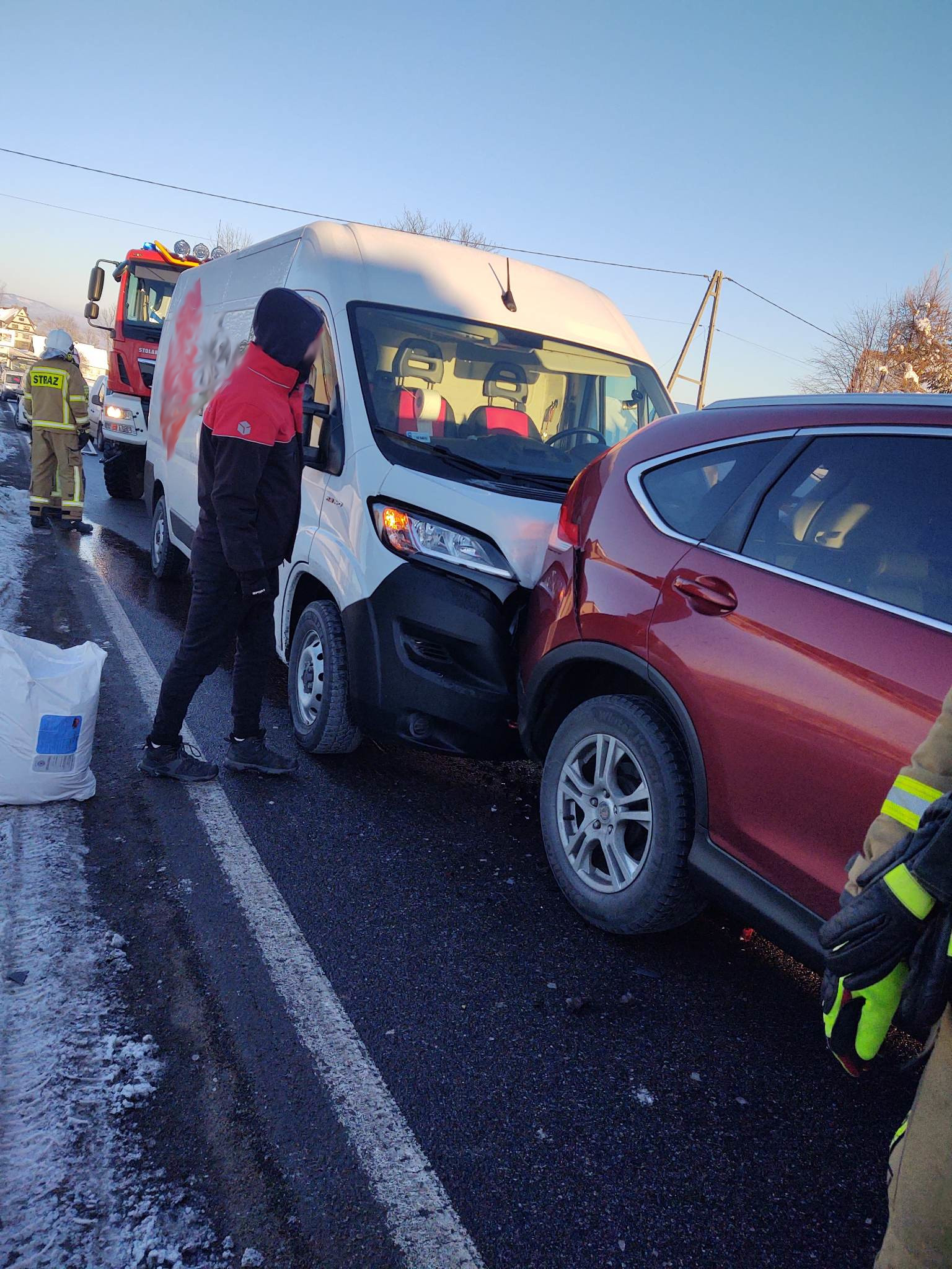 W godzinach porannych, na popularnej "Zakopiance" w miejscowości Rdzawka, w wyniku najechania na tył pojazdu doszło do kolizji dwóch samochodów, osobowego i dostawczego. Brak osób rannych. Działania straży polegały na odłączeniu akumulatorów oraz sorbcji rozlanych płynów eksploatacyjnych.