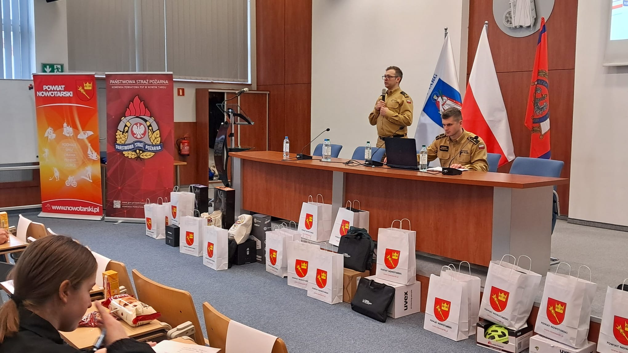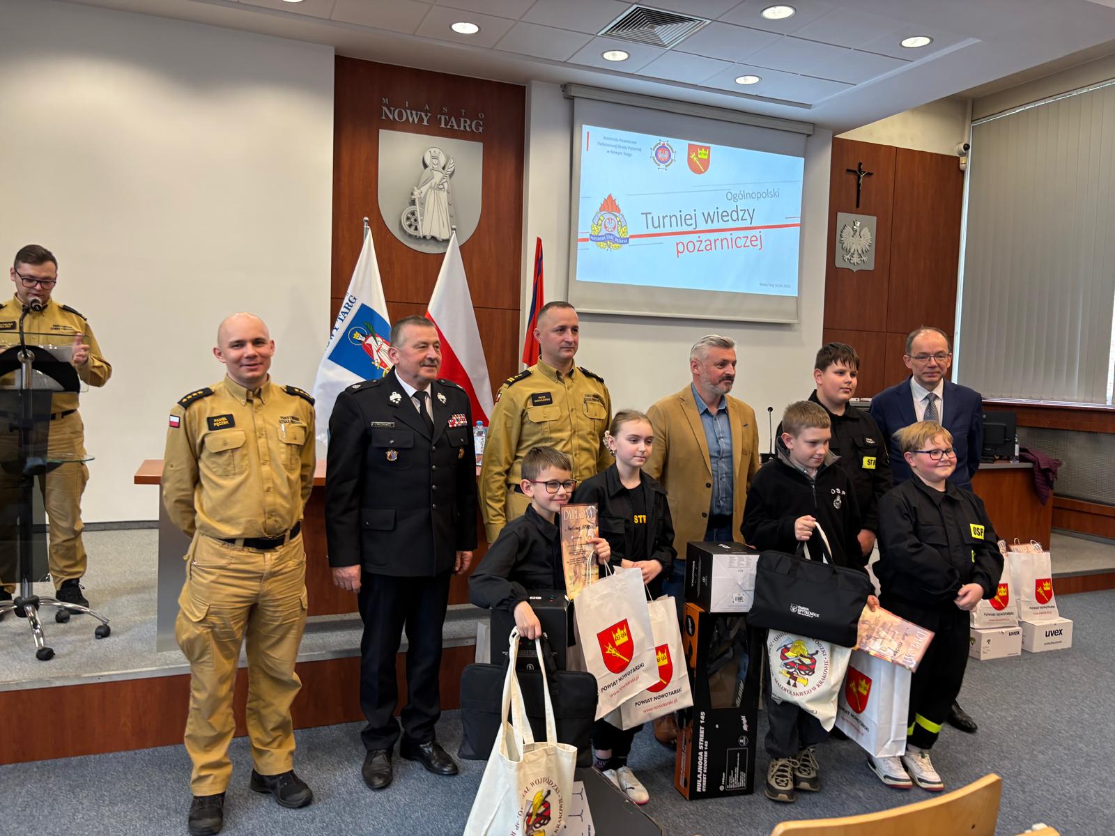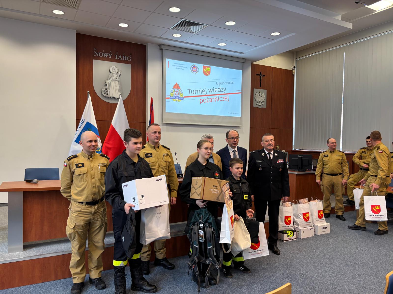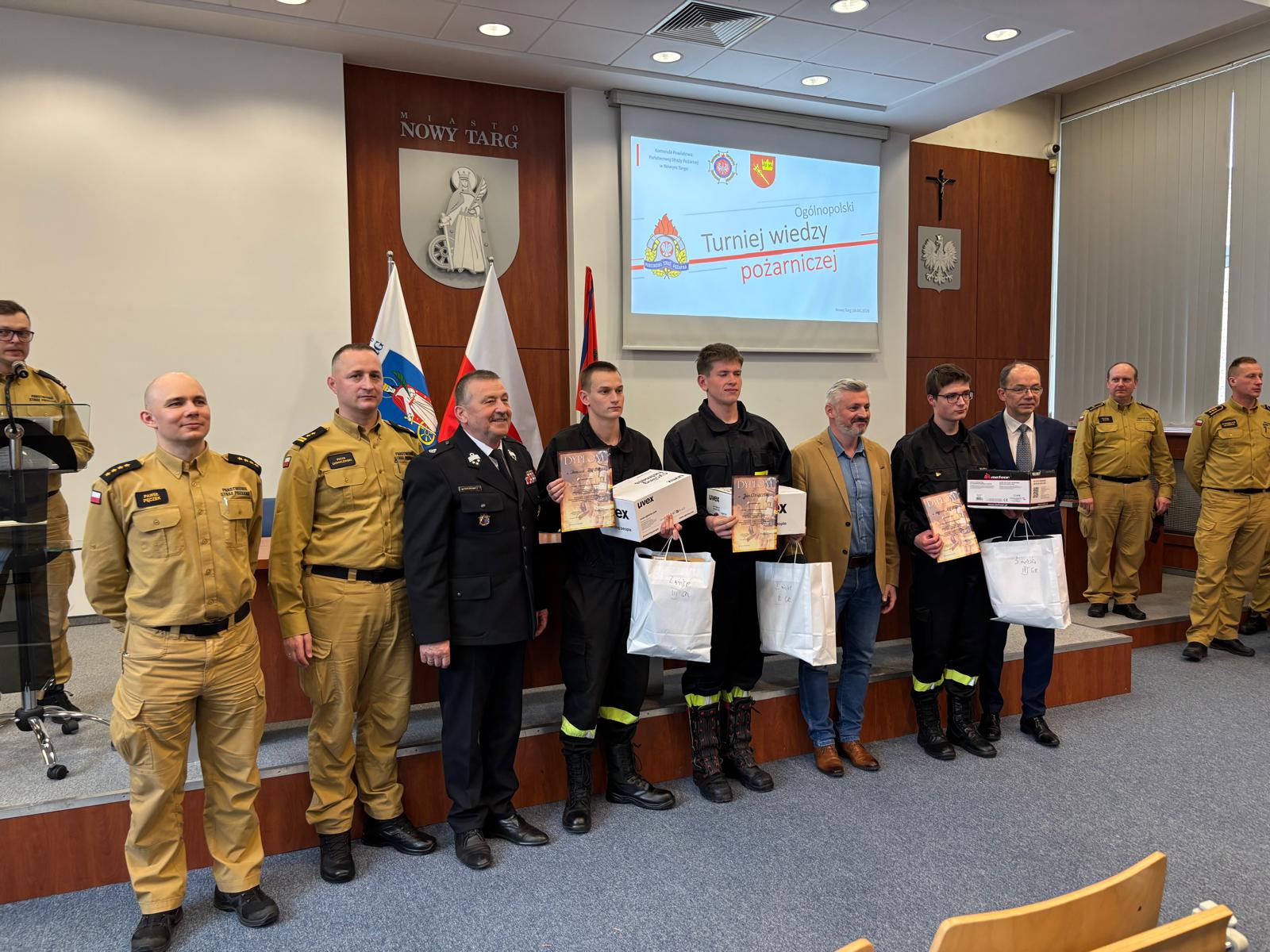 Nagrody zwycięzcom wręczyli: Wicestarosta Nowotarski Robert Furca, Burmistrz Nowego Targu Grzegorz Watycha, Komendant Powiatowy PSP w Nowym Targu bryg. Piotr Domalewski wraz zastępcą st. kpt. Pawłem Pęczkiem i Prezes Oddziału Powiatowego ZOSP RP w Nowym Targu dh Jan Kuczkowicz.