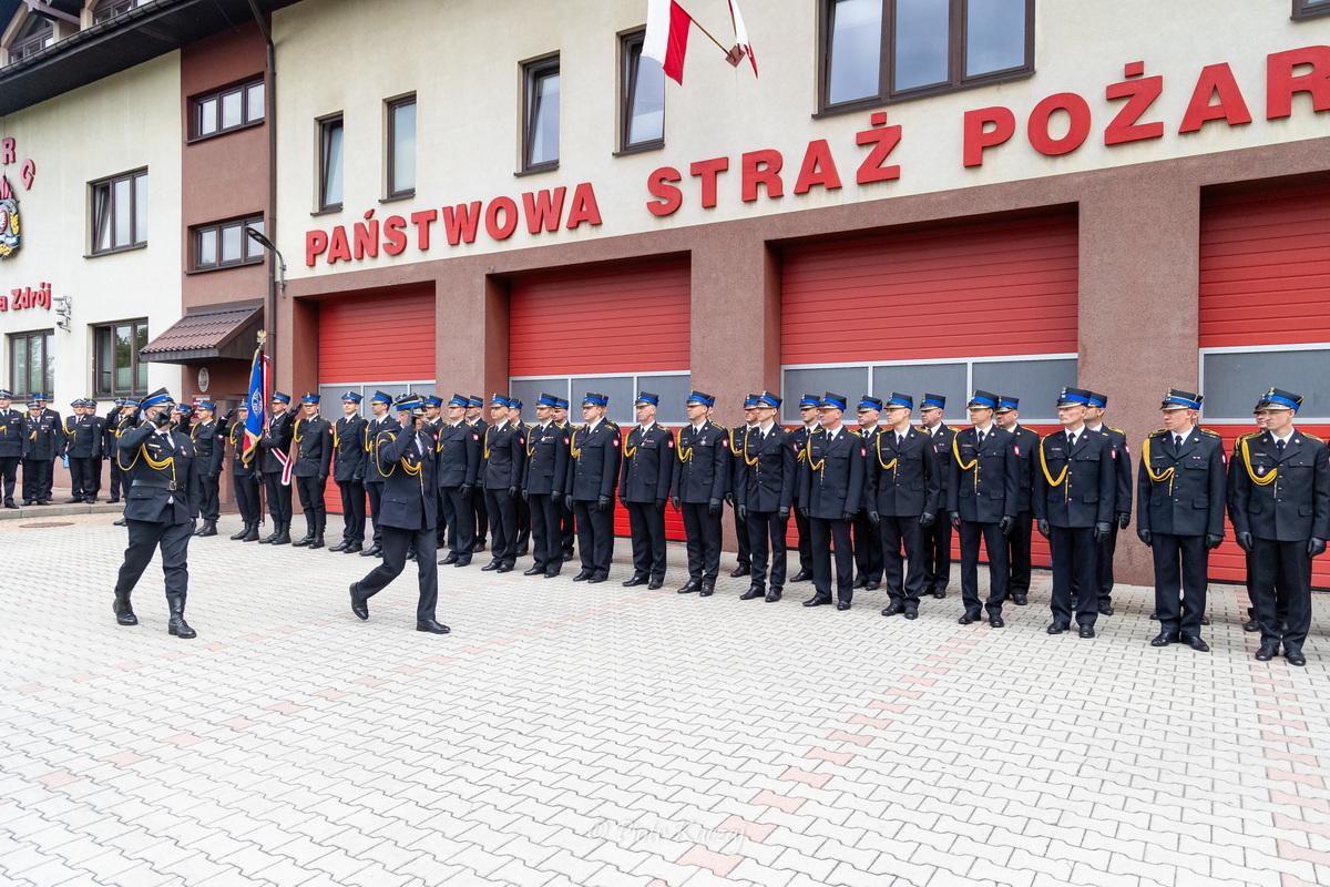 Uczestników uroczystego apelu przywitał mł. bryg. Piotr Domalewski Komendant Powiatowy PSP w Nowym Targu, który podziękował również strażakom i pracownikom cywilnym za wzorową pracę, a w szczególności za trud poniesiony przez strażaków, którzy uczestniczyli w gaszeniu w ubiegłym roku pożarów w Grecji. Podziękował także przedstawicielom władz obecnym na spotkaniu, za dobrą współpracę ze strażą pożarną oraz wspieranie strażaków w codziennej służbie i finansową pomoc na modernizację bazy sprzętowej, zarówno w PSP jak i OSP. Po wręczeniu wyróżnień i awansów głos zabrali zaproszeni goście, którzy dziękowali i składali gratulacje oraz życzenia strażakom. Chwalili ich za profesjonalizm i poświecenie przy realizacji trudnych zadań ratowniczych. Na zakończenie uroczystości Komendant Powiatowy PSP w Nowym Targu wręczył zaproszonym gościom w podziękowaniu za dotychczasową współpracę, okolicznościowe statuetki wykonane w związku z 20-leciem oddania do użytku po gruntownej modernizacji Jednostki Ratowniczo-Gaśniczej w Rbace-Zdroju.