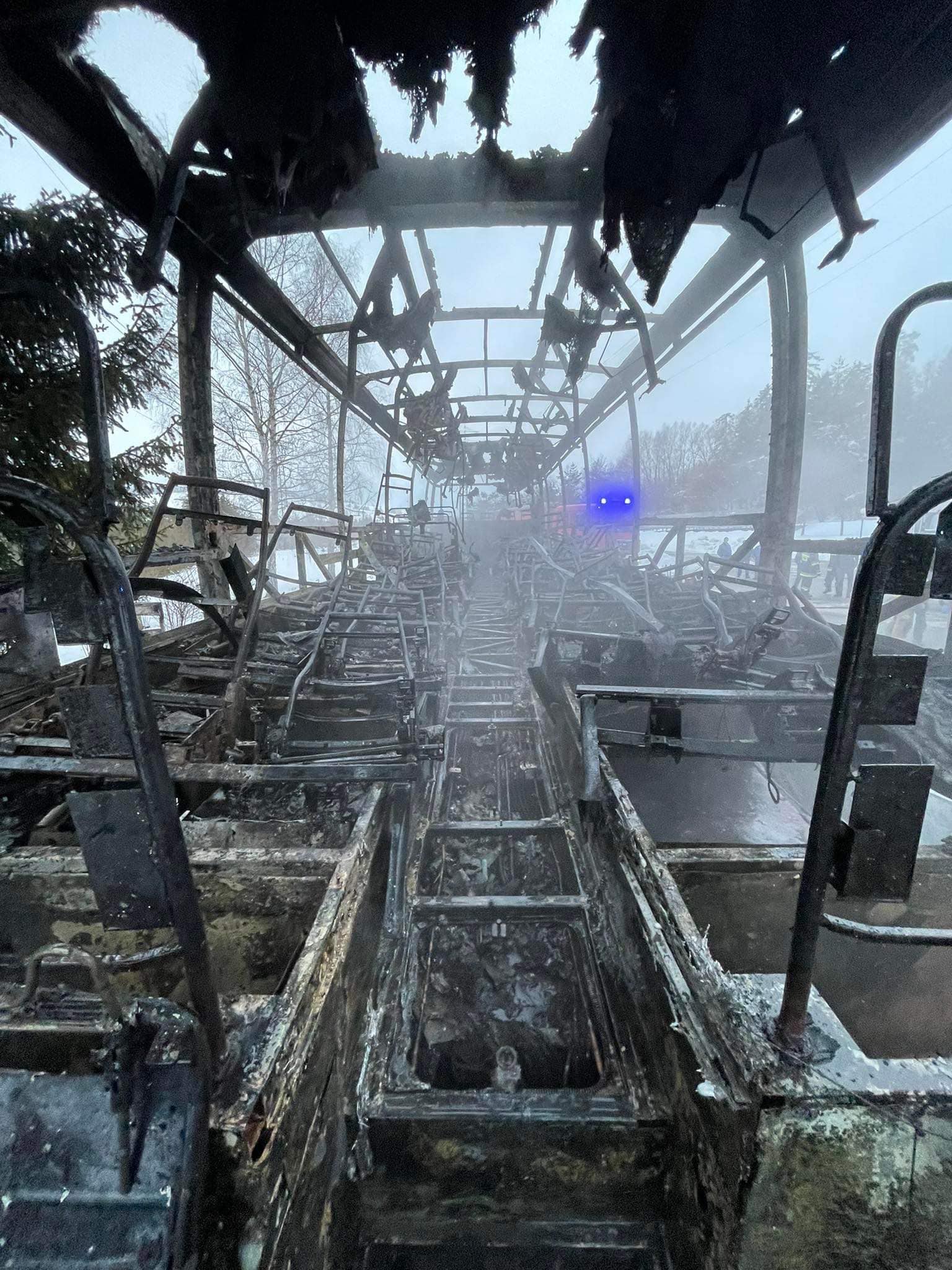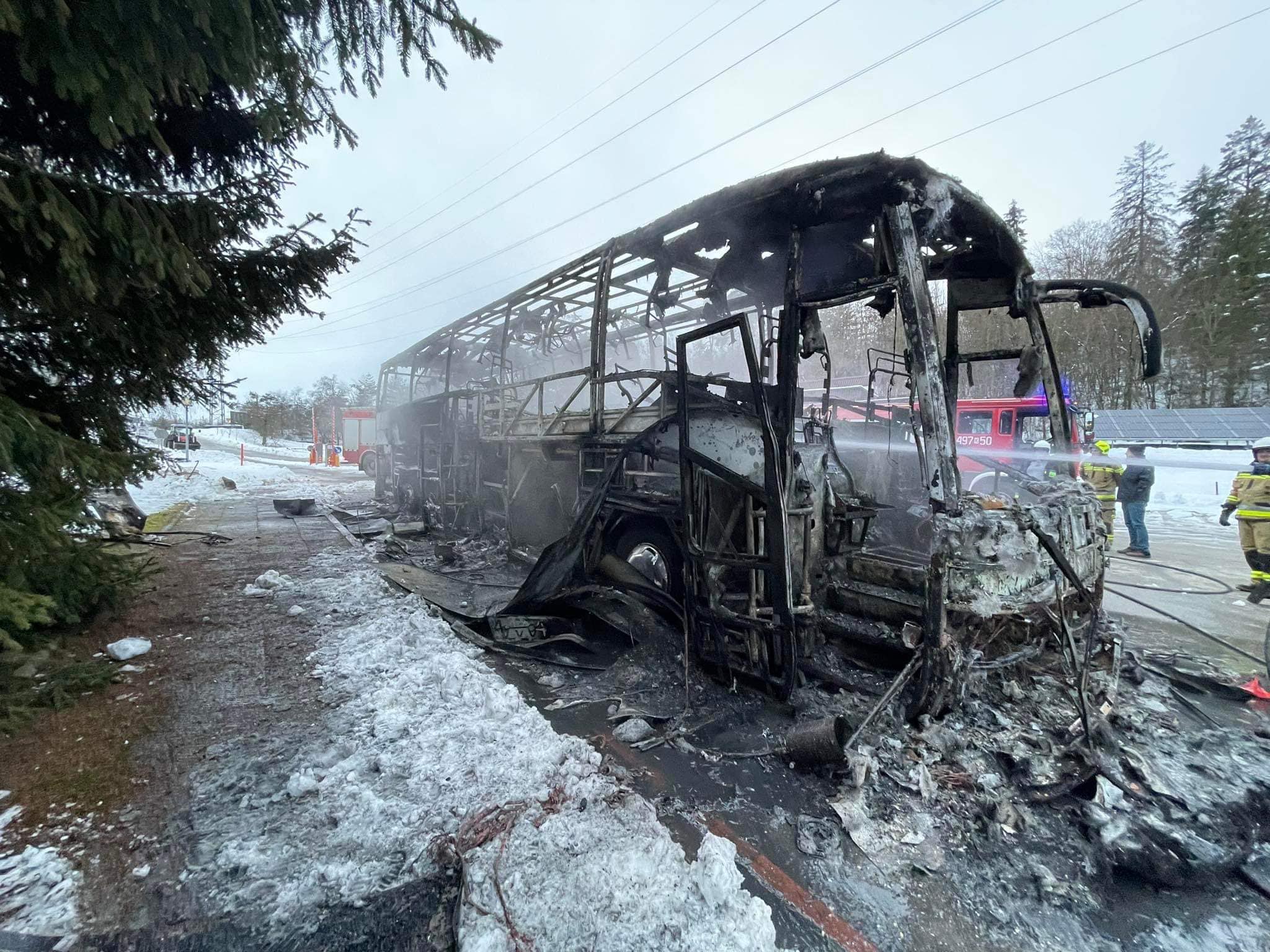 W dniu 24.01.2023 r. około godziny 7:00 wpłyneło zgłoszenie o pożarze autokaru na parkingu w Niedzicy. Na miejsce zadysponowane zostały 3 zastępy Państwowej i Ochotniczej Straży Pożarnej łącznie 17 strażaków. W pożarze uległ spaleniu cały autokar.
