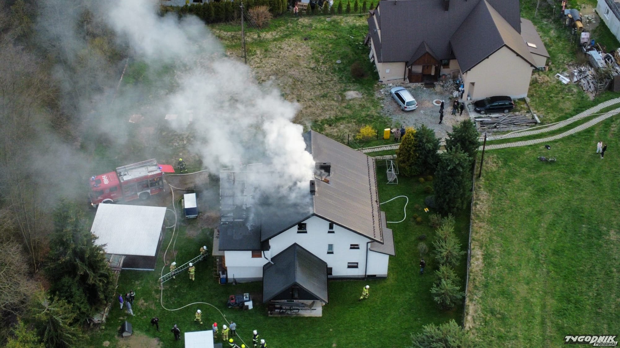 W dniu 26.04.2023r. o godzinie 18:43 doszło do pożaru domu jednorodzinnego w Sieniawie. Ogień objął poddasze i część dachu. W działaniach udział brało 9 samochodów straży pożarnej. Przyczyny pożaru ustala Policja.