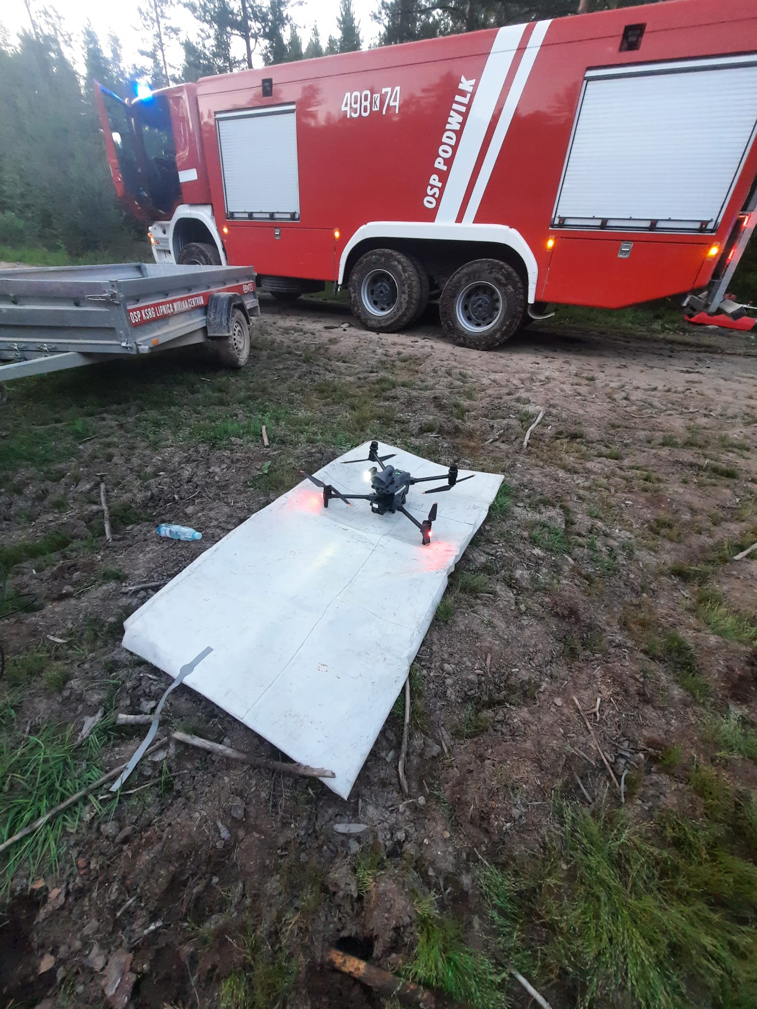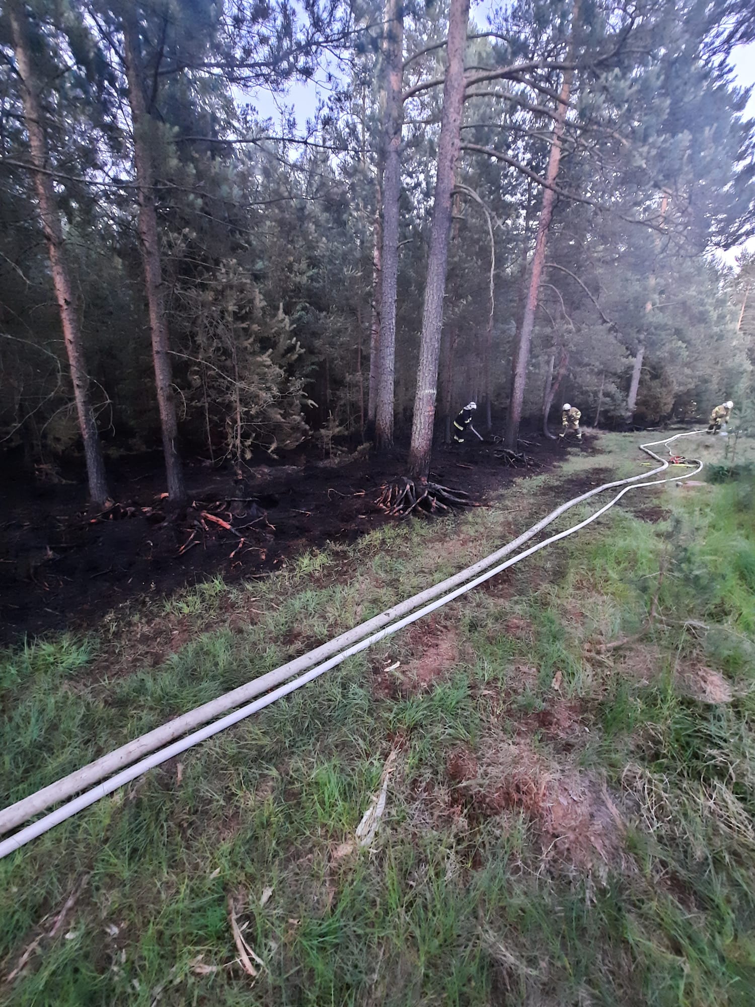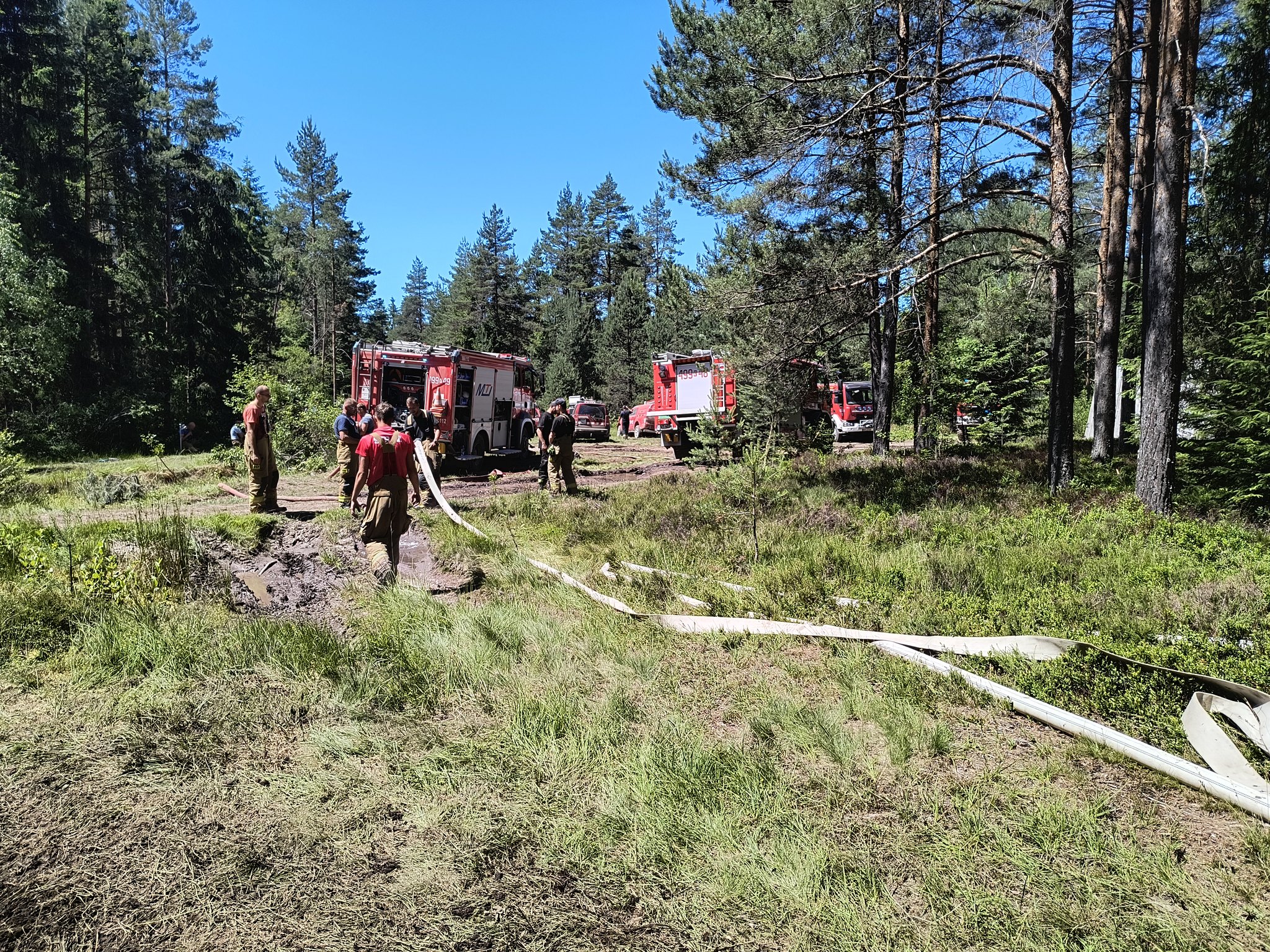 Dojazd do miejsca gdzie mogły dojechać pojazdy pożarnicze to wąska leśna droga ponad 5 km długości z przejazdem tylko w jednym kierunku. Od miejsca gdzie udało się dojechać samochodami pożarniczymi do miejsca, gdzie się paliło można było dostać się tylko quadami i na piechotę ponad 500 m pomiędzy drzewami. Strażacy zbudowali na tym odcinku linię wężową celem dotarcia z wody do pogorzeliska.