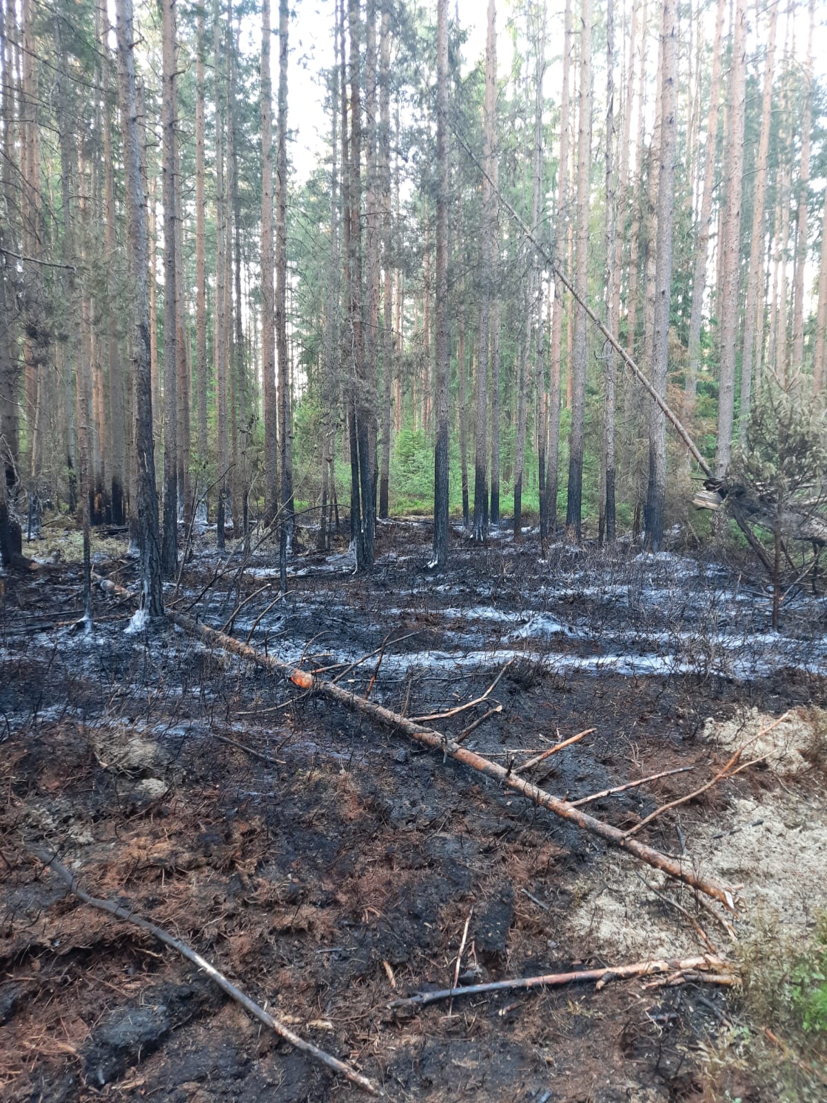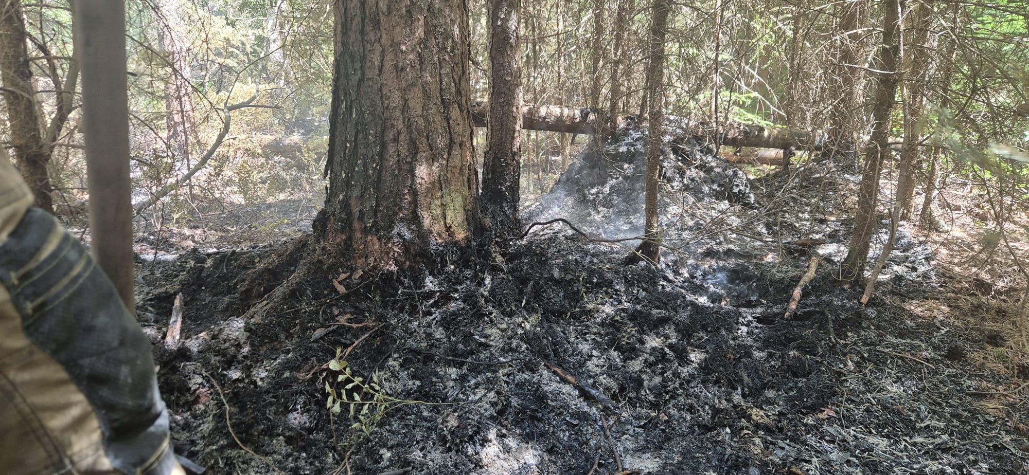 3.07.2025 r, godz. 08:40 ponowna kontrola pogorzeliska wykazała, że nadal występują punkowe zarzewia ognia na terenie pożaru. Do działań dogaszających znowu skierowano łącznie 26 pojazdów oraz 95 strażaków Państwowej i Ochotniczych Straży Pożarnych. Akcję gaśniczą zakończono ok godz. 23:20 po prawie 15 godzinach działań.