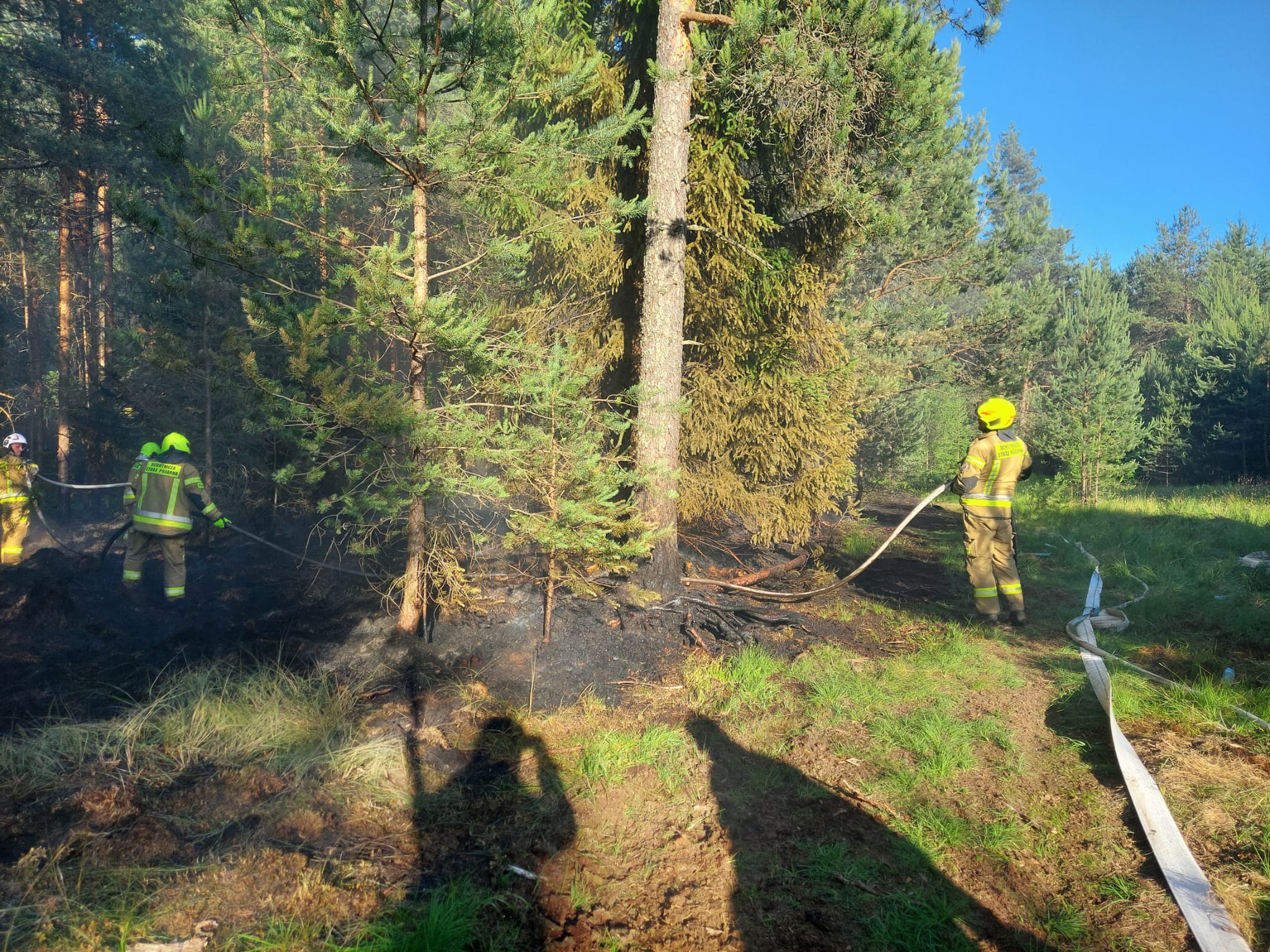 4.07.2025 r. kontrola pogorzeliska w godzinach porannych nie wykazała, aby na miejscu było jakieś zagrożenie. Działania na tę chwilę są zakończone.