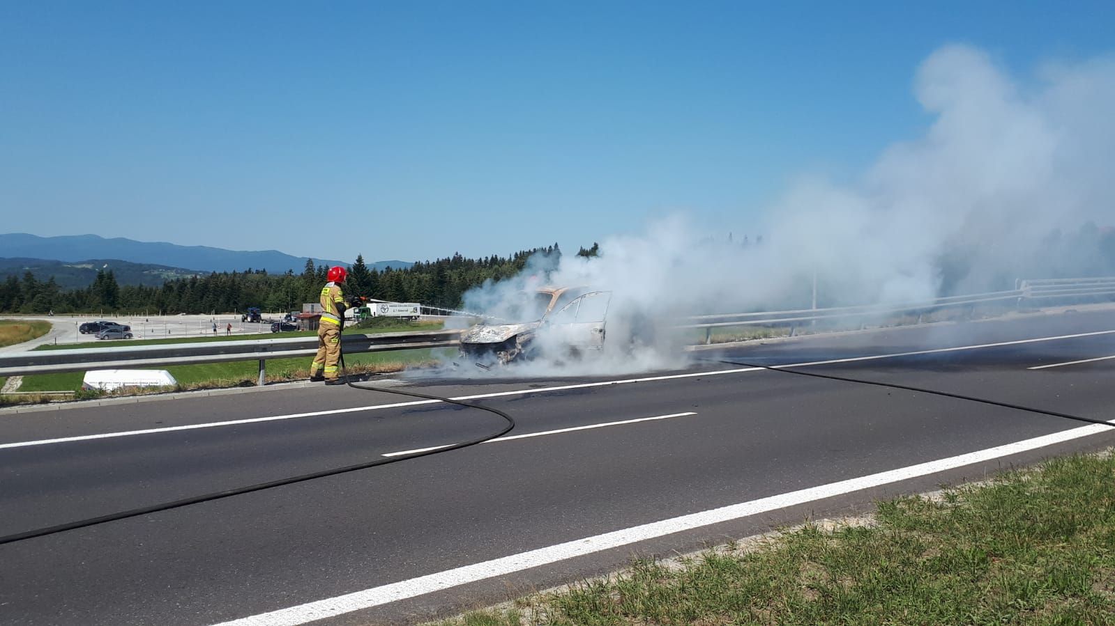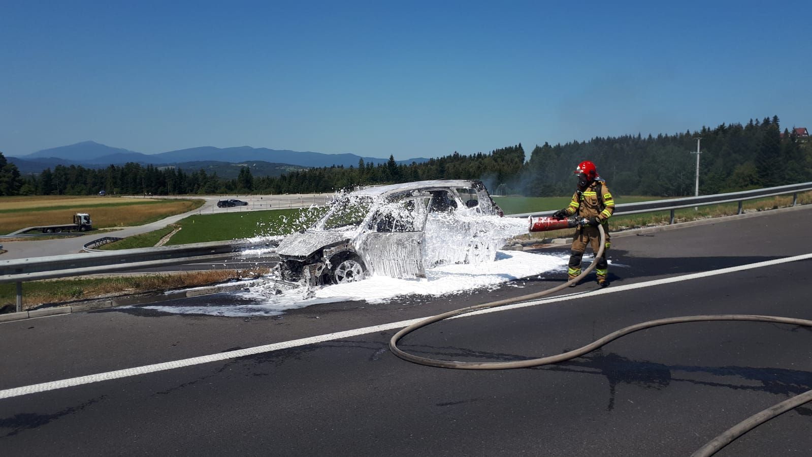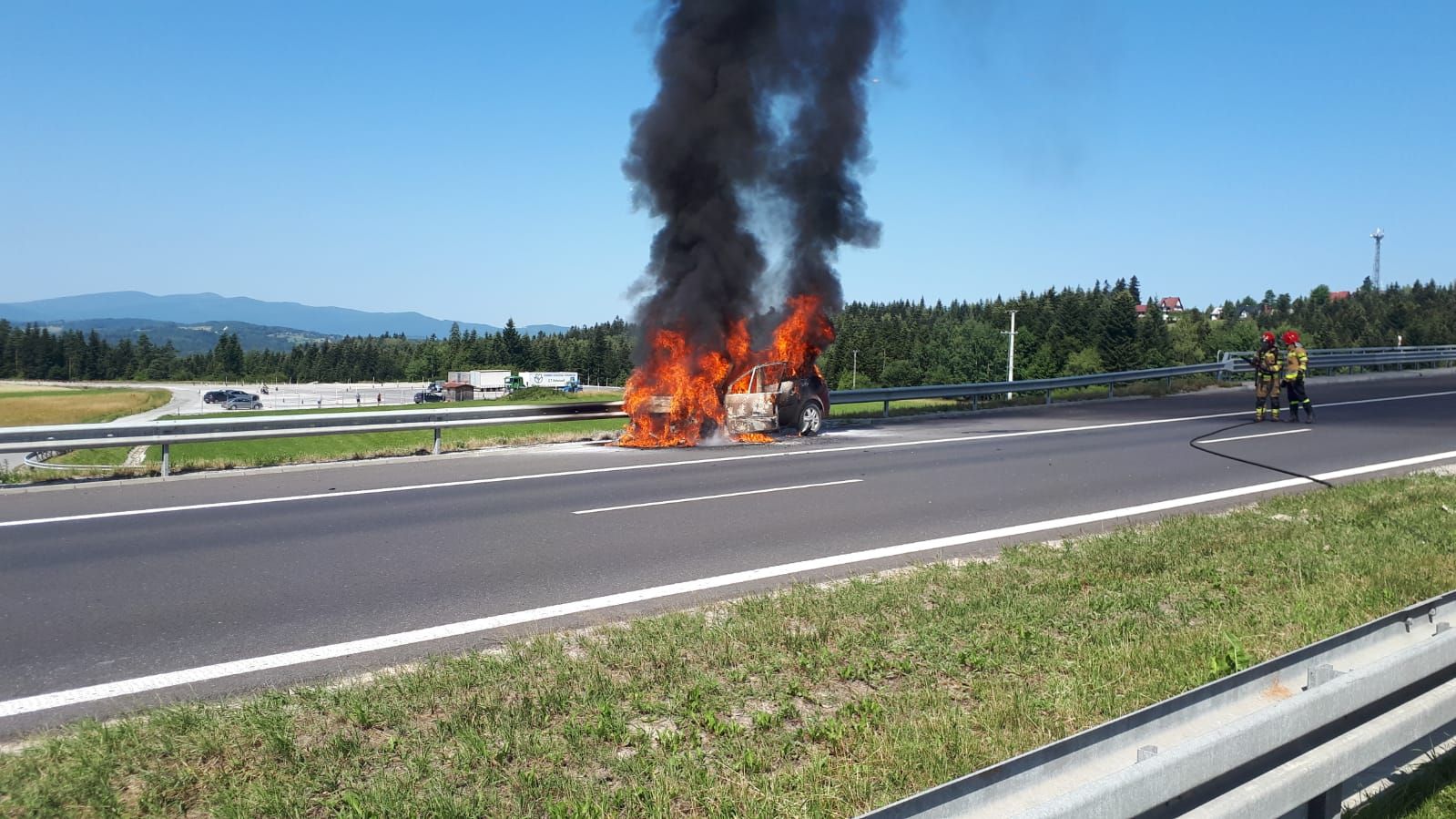 W dniu 20.07.2022r. na drodze S7 w miejscowości Rabka - Zdrój doszło do pożaru samochodu osobowego. Do pożaru zadysponowane zostały zastępy z JRG Rabka - Zdrój.