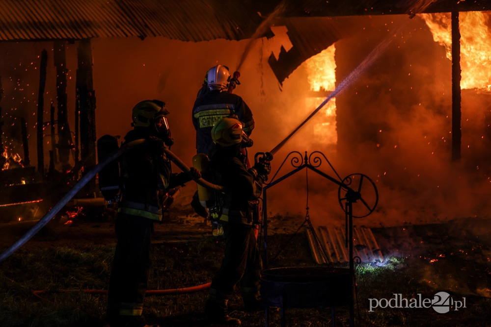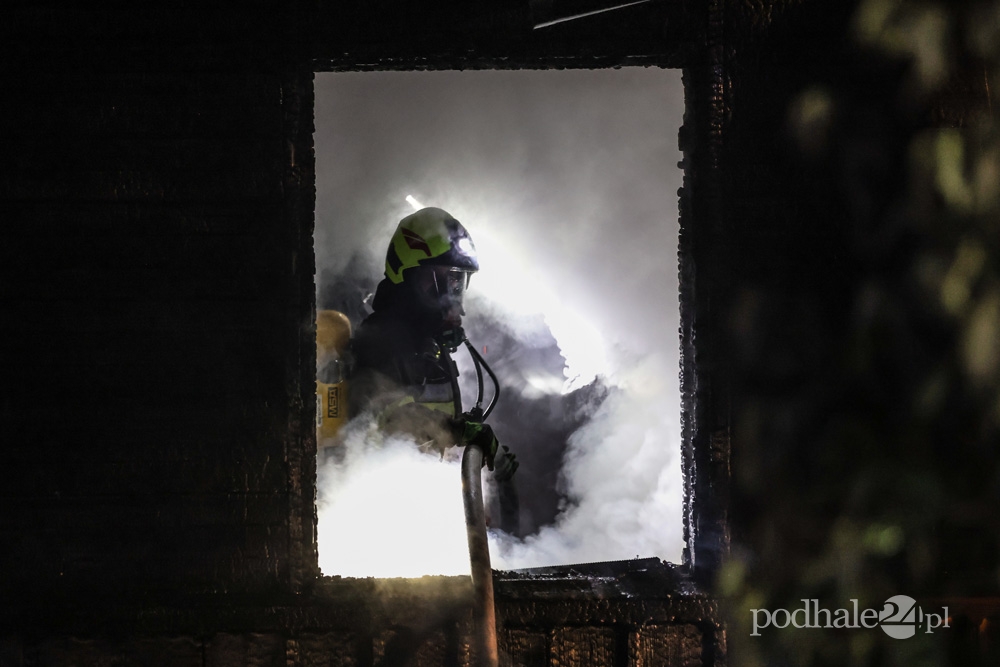Pożar drewnianego budynku.