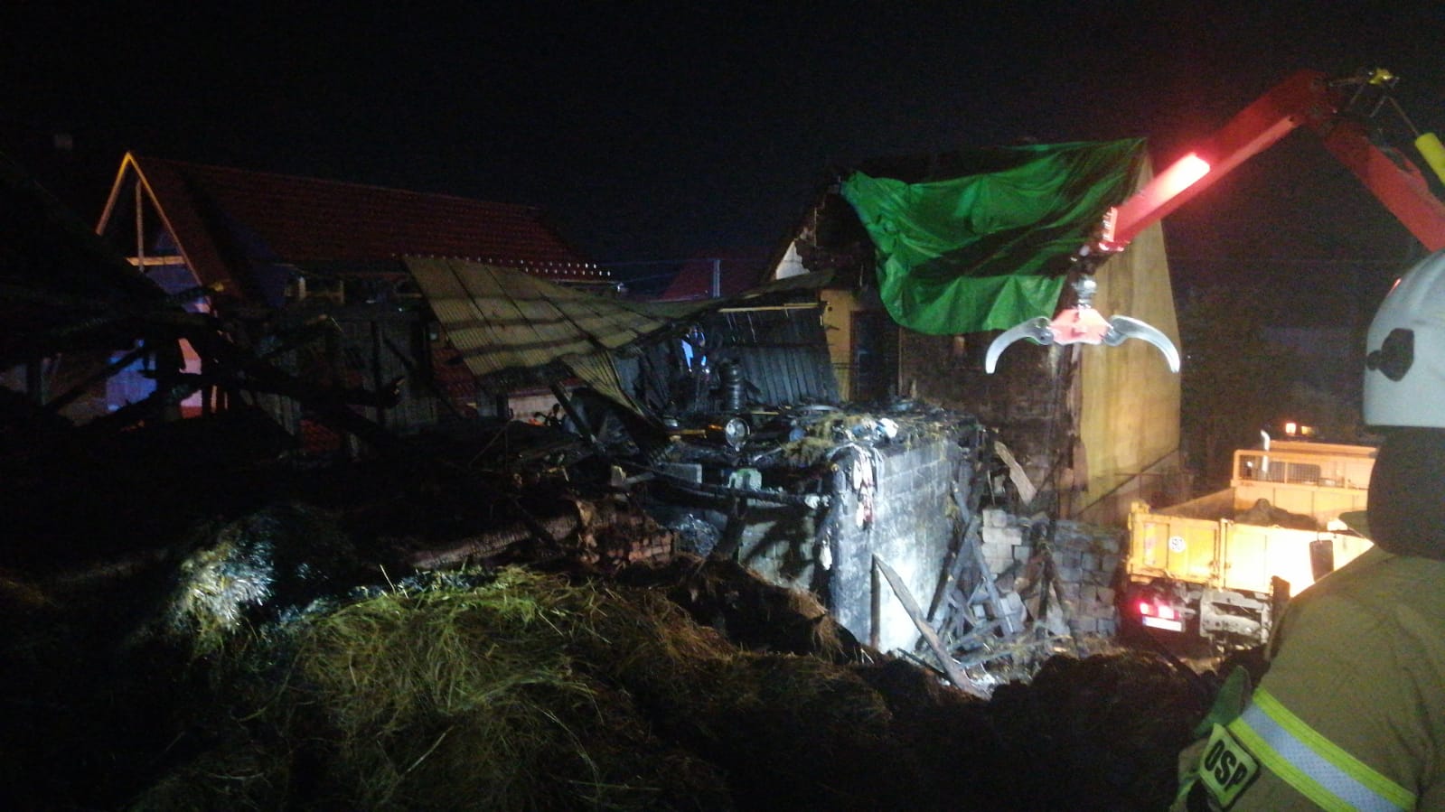 Do zdarzenia natychmiast zadysponowano Jednostkę Ratowniczo-Gaśniczą w Nowym Targu oraz okoliczne jednostki OSP. Po przybyciu na miejsce zdarzenia stwierdzono, że pożarem objęty jest całkowicie budynek gospodarczy (stodoła i stajnia) oraz poddasze na budynku mieszkalnym, który był połączony konstrukcyjnie z budynkiem gospodarczym. Działania straży w pierwszej fazie polegały na gaszeniu zabudowań gospodarczych i poddasza budynku mieszkalnego. Wprowadzono do wnętrza budynków ratowników w aparatach ochrony dróg oddechowych oraz powadzono ewakuację inwentarza żywego. Po opanowaniu i ugaszeniu pożaru przystąpiono do niezbędnych prac rozbiórkowych w celu dotarcia do zarzewi ognia. Po godzinie akcji praktycznie udało się ugasić pożar jednak działania gaśnicze (dogaszanie) i rozbiórka konstrukcji trwały łącznie ponad 12 godzin.