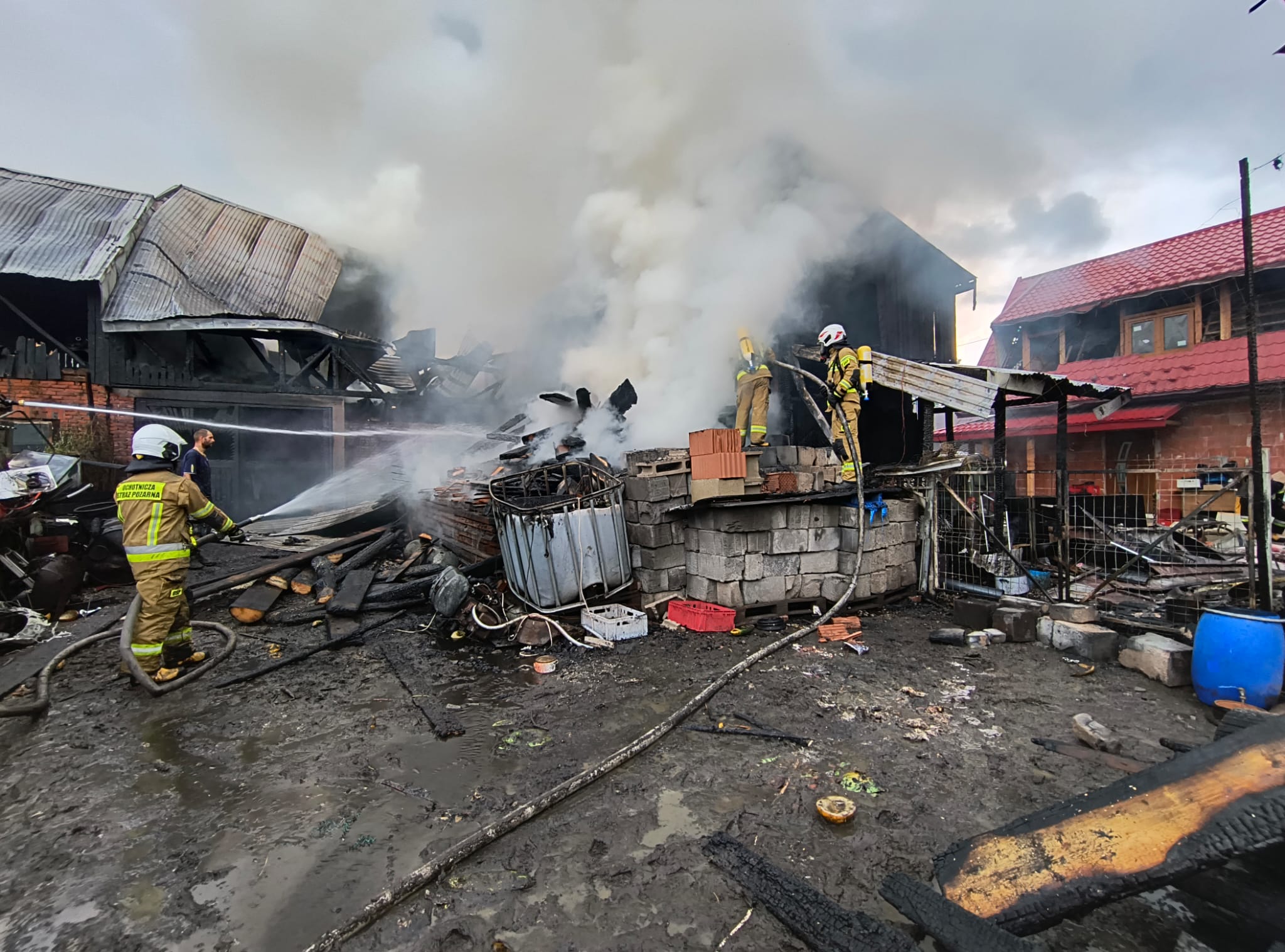 Pożar zabudowań mieszkalno-gospodarczych w centrum Czarnego Dunajca