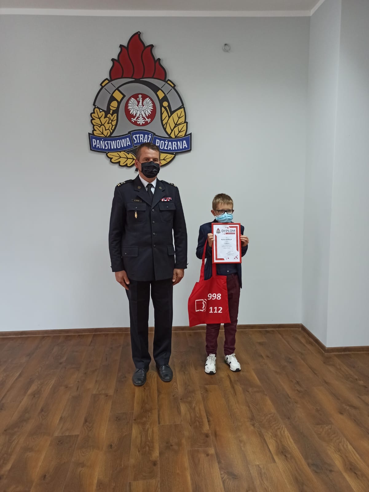 Uroczyste wręczenie nagrody oraz dyplomu odbyło się w Komendzie Powiatowej PSP w Nowym Targu w obecności nauczycielki Pani Danuty Skorupa oraz rodziców Rafała, Agaty i Piotr Duraj.