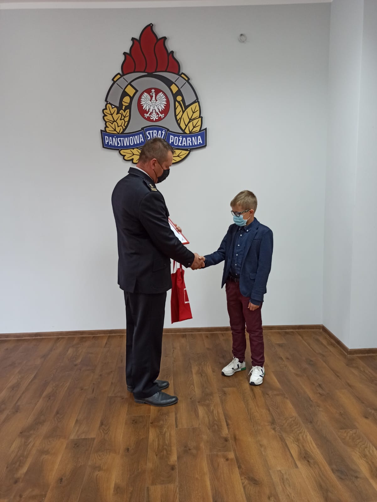 1 września 2020 roku bryg. Mariusz Łaciak Komendant Powiatowy Państwowej Straży Pożarnej w Nowym Targu w imieniu Komendanta Głównego PSP wręczył nagrodę oraz dyplom Rafałowi Duraj uczniowi klasy VI Szkoły Podstawowej w Podczerwonem za zajęcie I miejsca w konkursie kalendarzowym 2020 organizowanym przez Państwową Straż Pożarną.