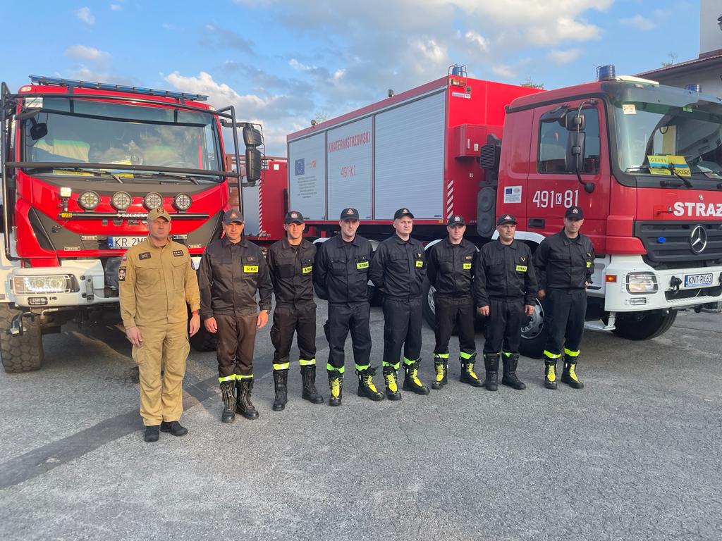 149 strażaków i 49 pojazdów wyruszyło do walki z pożarami lasów w Grecji. Koncentracja sił i środków nastąpiła w środę rano, w Krakowie, skąd strażacy wyruszyli w godzinach popołudniowych do celu. Przez przejście granicznej w Chyżnem przejechał konwój do Grecji. Do walki z pożarami lasów w Grecji wyruszyło 11 strażaków z KP PSP w Nowym Targu – ośmiu z JRG Nowy Targ i trzech z JRG Rabka-Zdrój. Udali się tam ciężkim i średnim samochodem ratowniczo-gaśniczym oraz zestawem kontenerowym z kontenerem kwaterunkowym i sanitarnym.