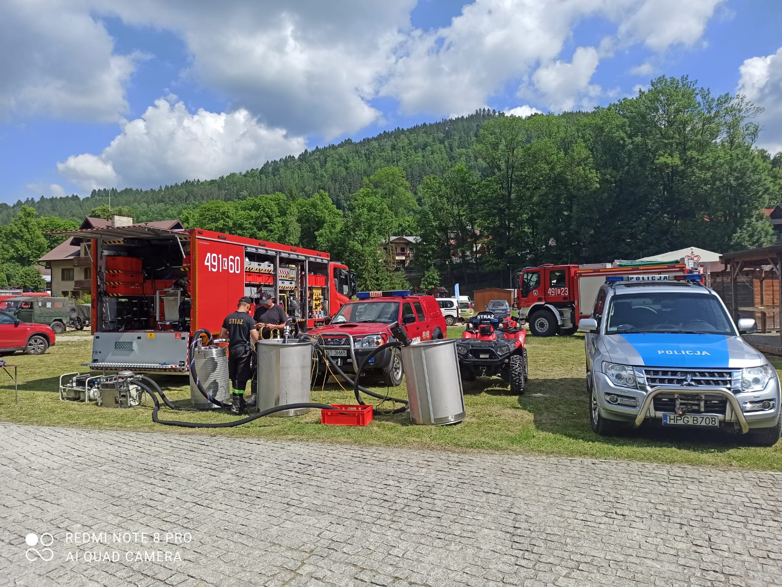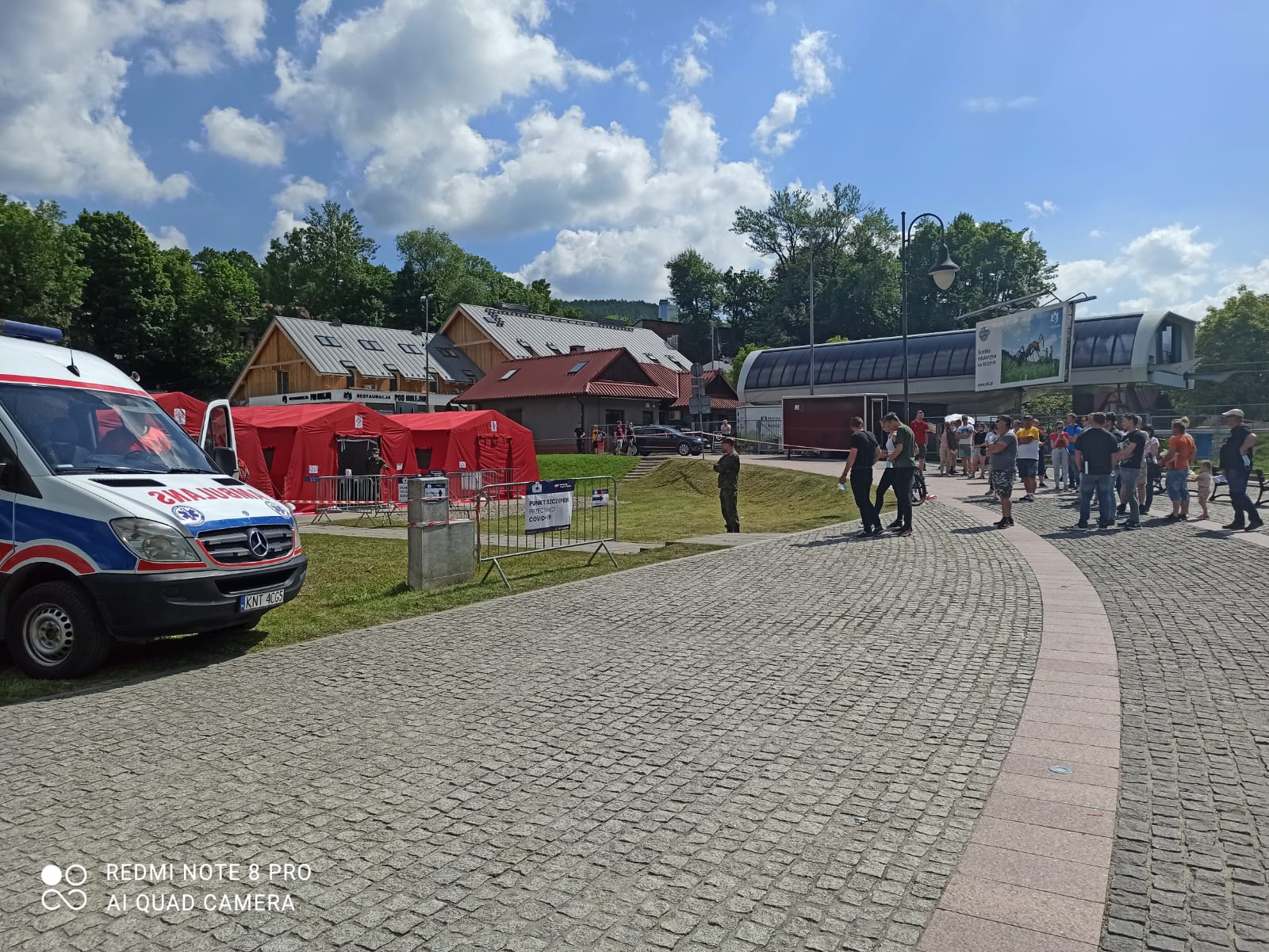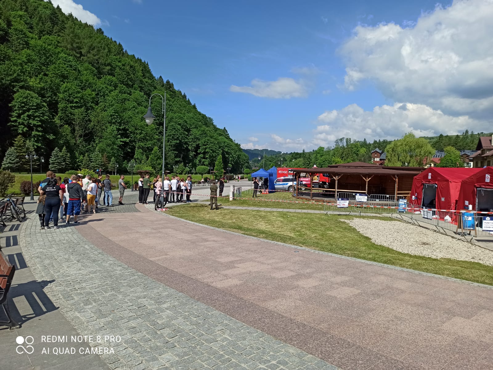 Strażacy z JRG w Nowym Targu w sobotę i niedzielę (12 i 13 czerwca br.) zabezpieczali plenerowy punkt szczepień zorganizowany obok Dolnej Stacji Kolei Linowej - Promenada w Szczawnicy.