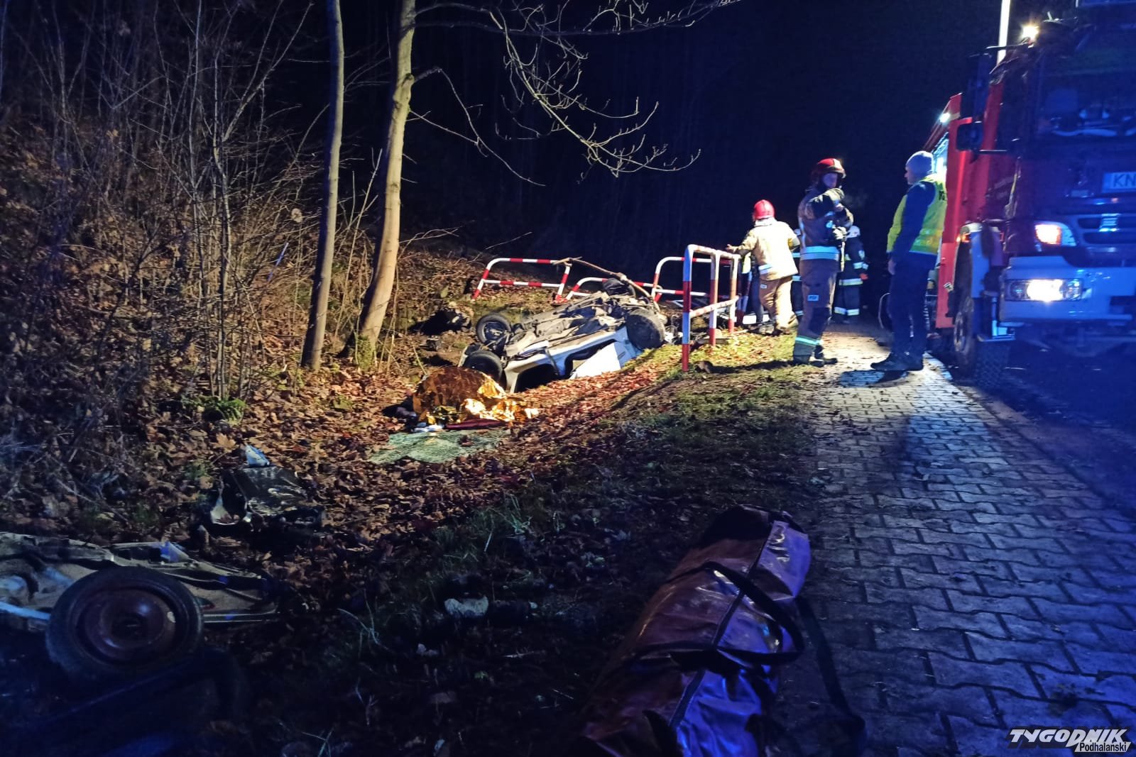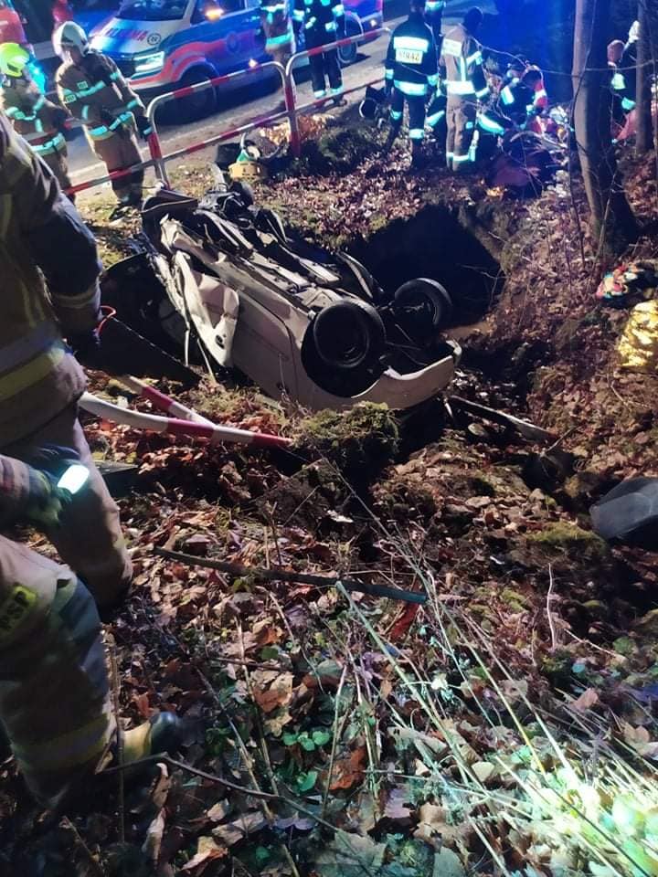 W dniu 25.11.2021 r. ok. godz. 16:33 otrzymaliśmy zgłoszenie o pojeździe znajdującym się w rowie na dachu w miejscowości Tylmanowa. Na miejsce zostały zadysponowane jednostki Ochotniczej Straży Pożarnej w Tylmanowej, Krościenku i Ochotnicy Dolnej oraz zastęp Jednostki Ratowniczo Gaśniczej z Nowego Targu. Na miejscu działały również Zespoły Ratownictwa Medycznego i Policja. Pojazdem podróżowały 2 osoby dorosłe i dziecko. Strażacy z użyciem sprzętu ratownictwa technicznego wykonali dostęp do poszkodowanych, w pojeździe i wspólnie z ZRM przetransportowali osoby poza pojazd. Jedna osoba była reanimowana na miejscu zdarzenia, natomiast druga osoba dorosła i dziecko zostały zabrane przez ZRM do szpitali. Niestety pomimo wysiłków ratowników życia jednej osoby na miejscu zdarzenia nie udało się uratować.