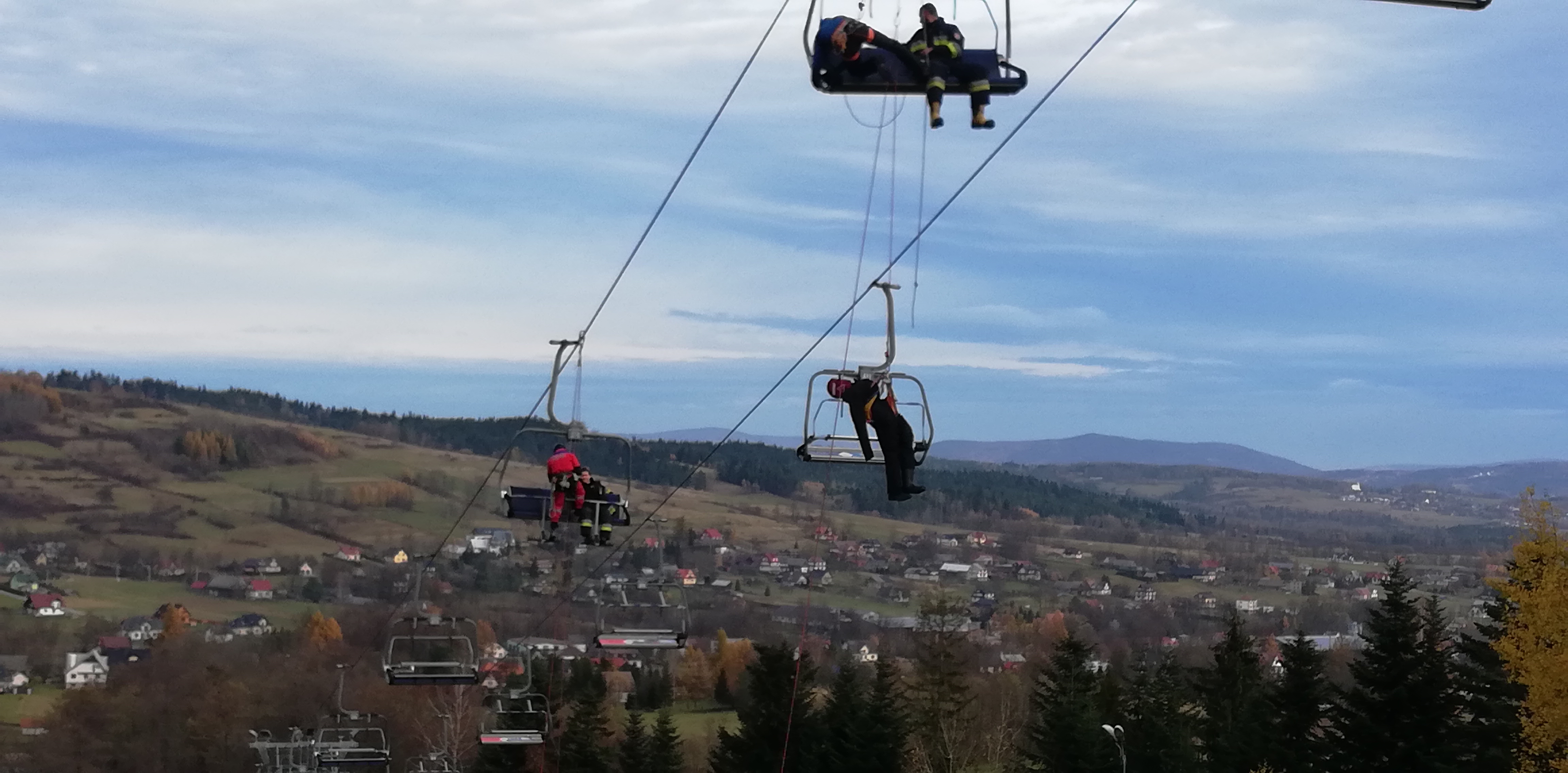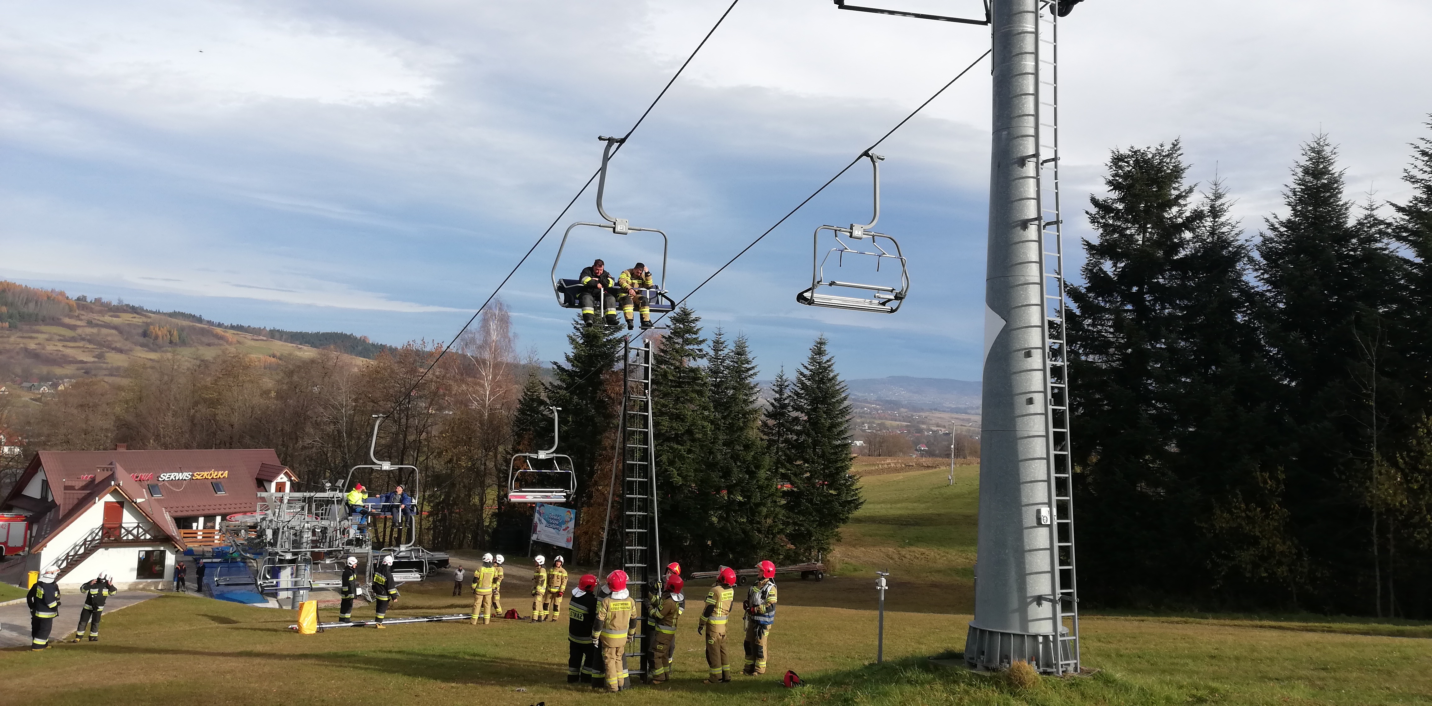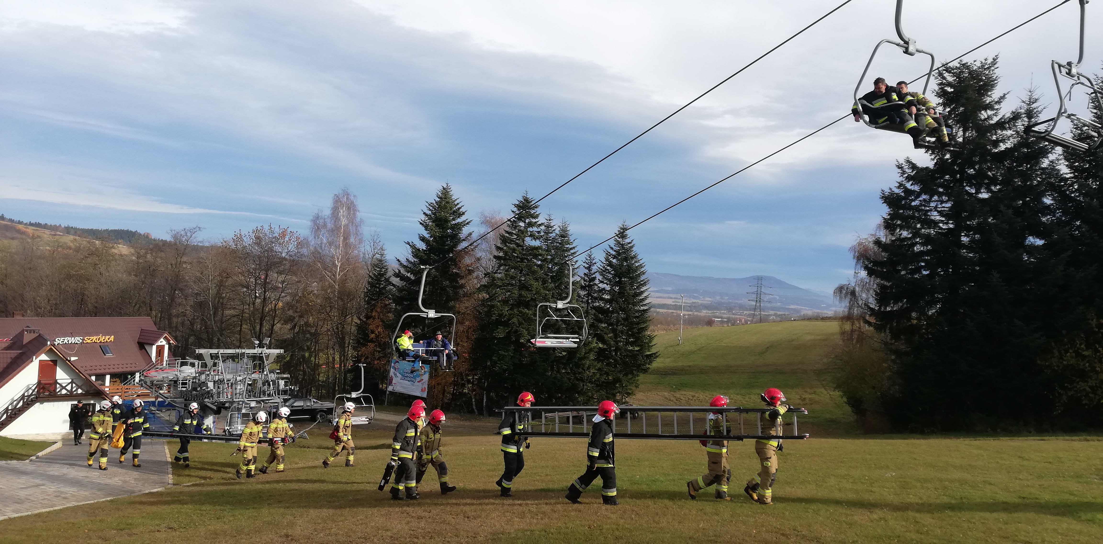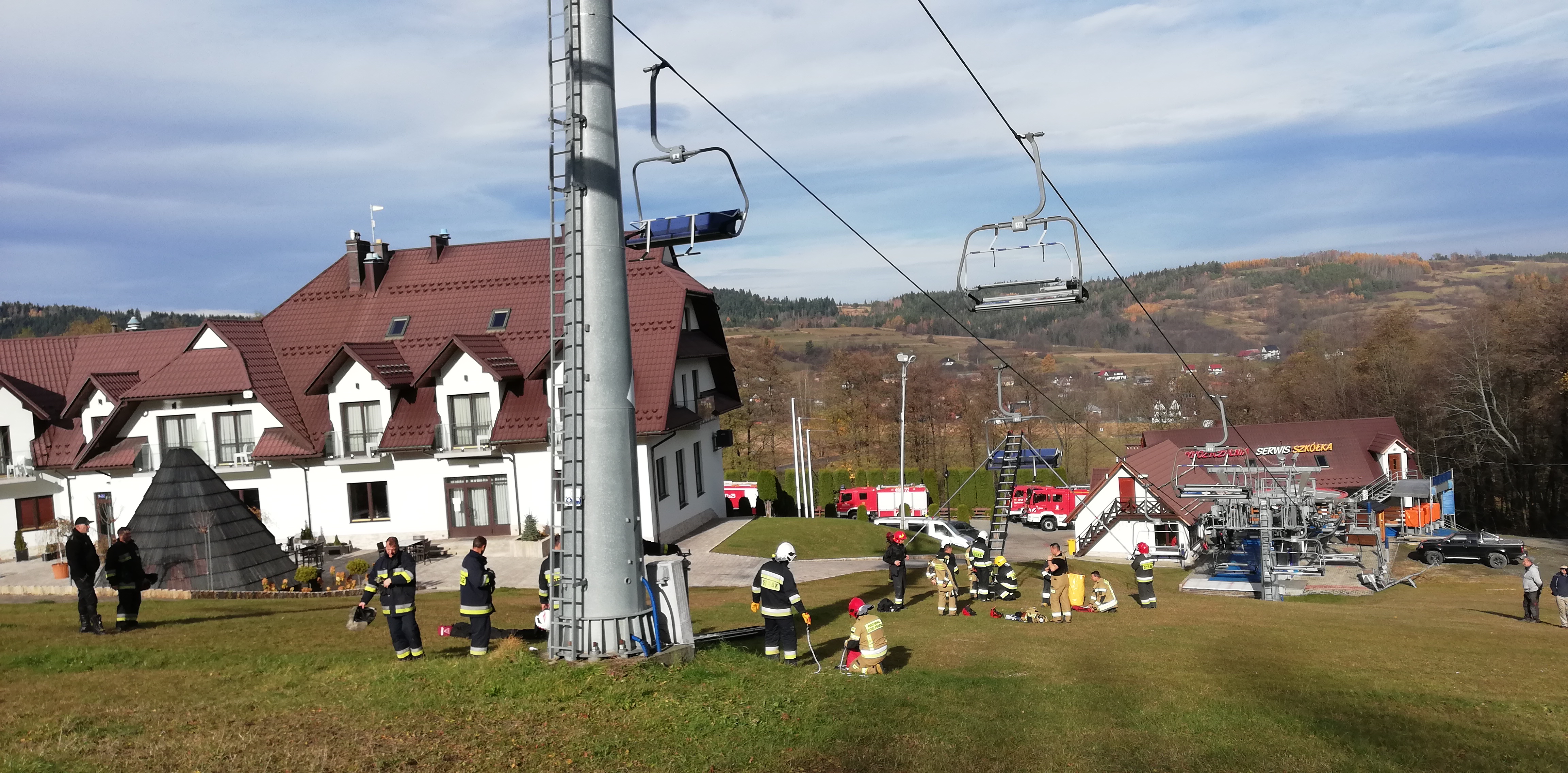 Wspólne ćwiczenia PSP, OSP i GOPR – ewakuacja ludzi z kolejek linowych