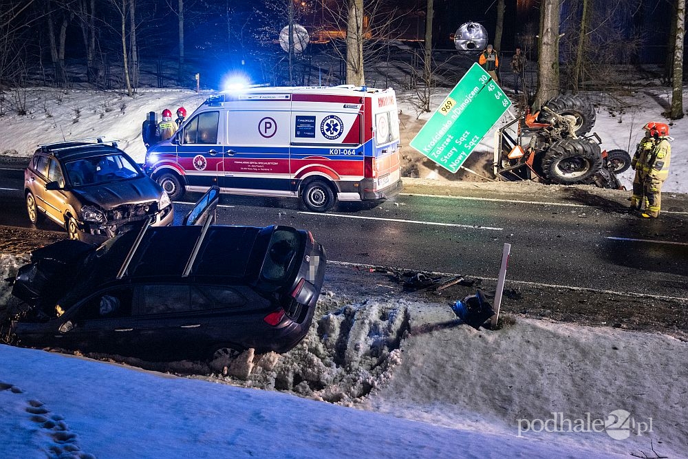 Do wypadku doszło w miejscowości Nowy Targ na al. 1000-lecia z udziałem dwóch samochodów osobowych i ciągnika rolniczego. W wyniku zdarzenia poszkodowane zostały 3 osoby. Na miejscu działała również Ochotnicza Straż Pożarna z Waksmunda, policja, która ustalała okoliczności zdarzenia oraz Zespoły Ratownictwa Medycznego.