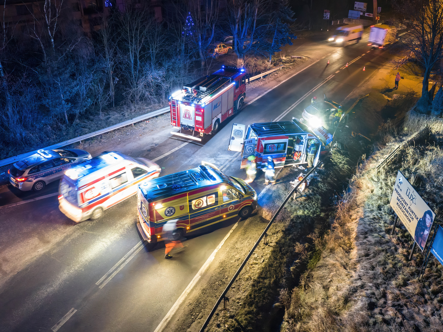 W dniu 29.12.2022 r około godziny 5:00 doszło do zderzenia karetki pogotowia ratunkowego i samochodu osobowego. Poszkodowane 4 osoby zostały przetransportowane do szpitala. Na czas działań ratowniczych ruch na drodze został całkowicie zablokowany.