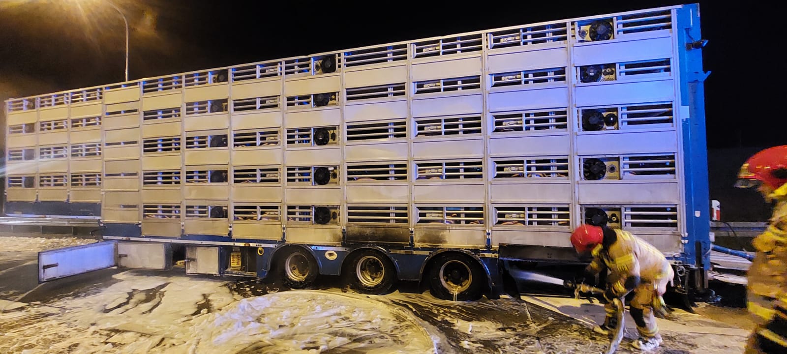 Pożar naczepy przewożącej 700 sztuk prosiaków